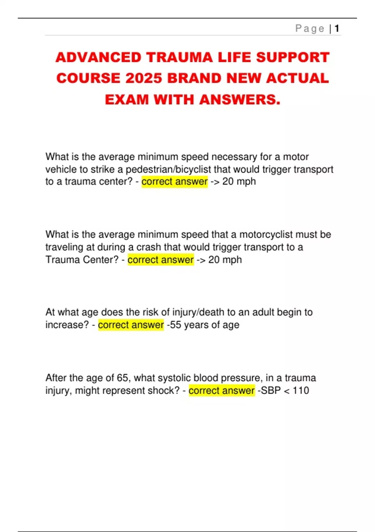 automatically get sent to a Trauma Center? - correct answer -> 20