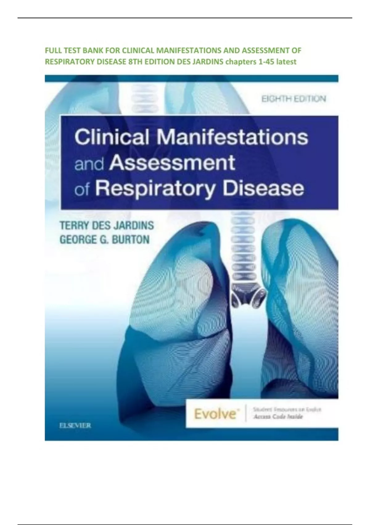 RESPIRATORY DISEASE 8TH EDITION DES JARDINS chapters 1-45 latest