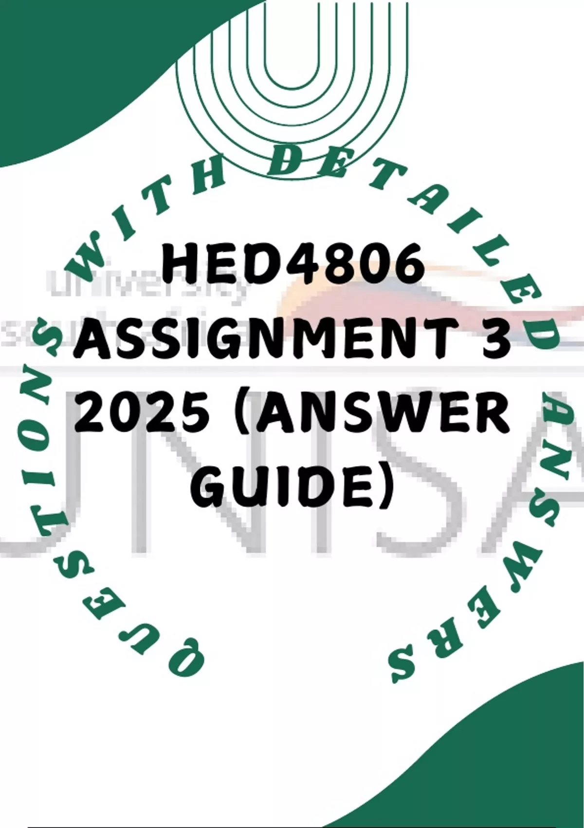 HED4806 ASSIGNMENT 3 2025 (Answer Guide) SECTION A Question 3.1: Explain the effects of the above practice in the broader context of decolonisation. (5 marks) The practice described in the extract where children were physically punished, humiliated, and fined for speaking their indigenous language (Gĩkũyũ) in school has significant psychological, cultural, and political effects in the broader context of decolonisation. At its core, this practice represents a systematic erasure of indigenous identity through linguistic suppression, which Ngũgĩ wa Thiong’o (1986) identifies as a crucial tool of colonisation. Psychological oppression was a direct consequence of such punishment. Associating one’s mother tongue with shame, stupidity, and backwardness instilled a sense of inferiority in learners. As a result, indigenous children internalised colonial values that deemed their culture and identity as inferior, undermining their self-worth and pride in their heritage (Wa Thiong’o, 1986). Cultural alienation occurred as learners were forced to abandon their linguistic and cultural norms. Language is a vehicle of culture; its loss meant the erosion of traditional knowledge systems, oral histories, and ways of life (UNESCO, 2003). This disconnection from indigenous roots impedes efforts toward cultural reclamation and identity formation in postcolonial societies. Political and educational disempowerment was also perpetuated. By privileging English as the language of instruction and success, colonial systems limited access to education for those not proficient in the foreign language, thus reinforcing social hierarchies and restricting upward mobility (Wade, 2018). In the broader decolonial framework, such practices are viewed as instruments of control, used to assert dominance and maintain colonial ideologies. Decolonisation therefore entails not only the political departure of