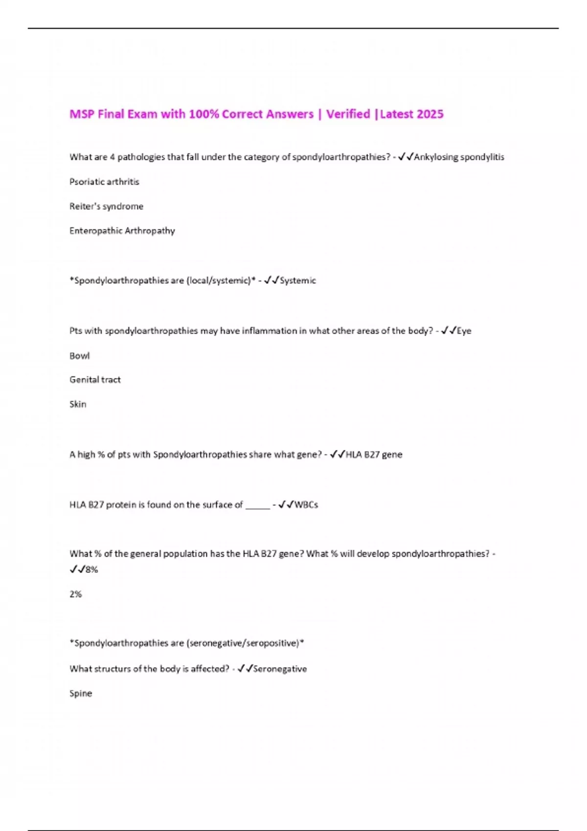 MSP Final Exam with 100% Correct Answers | Verified |Latest 2025