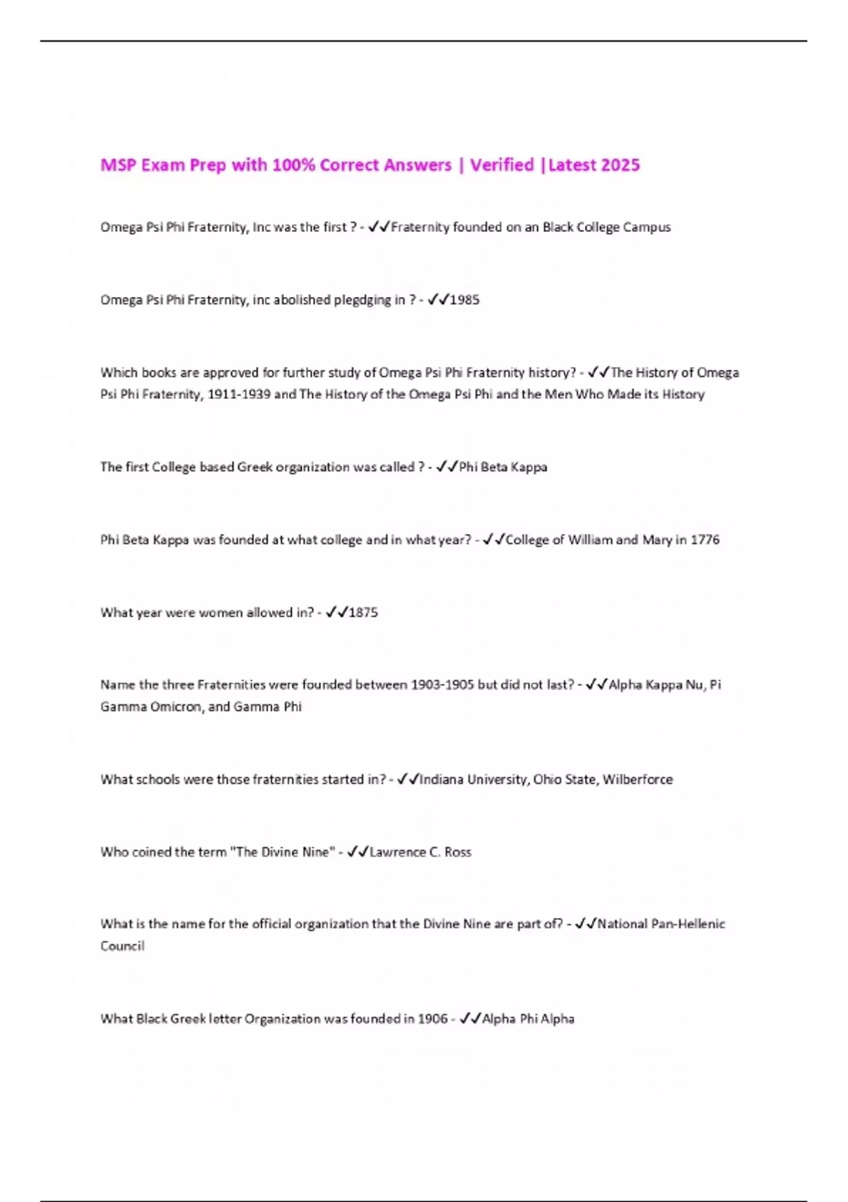 MSP Exam Prep with 100% Correct Answers | Verified |Latest 2025
