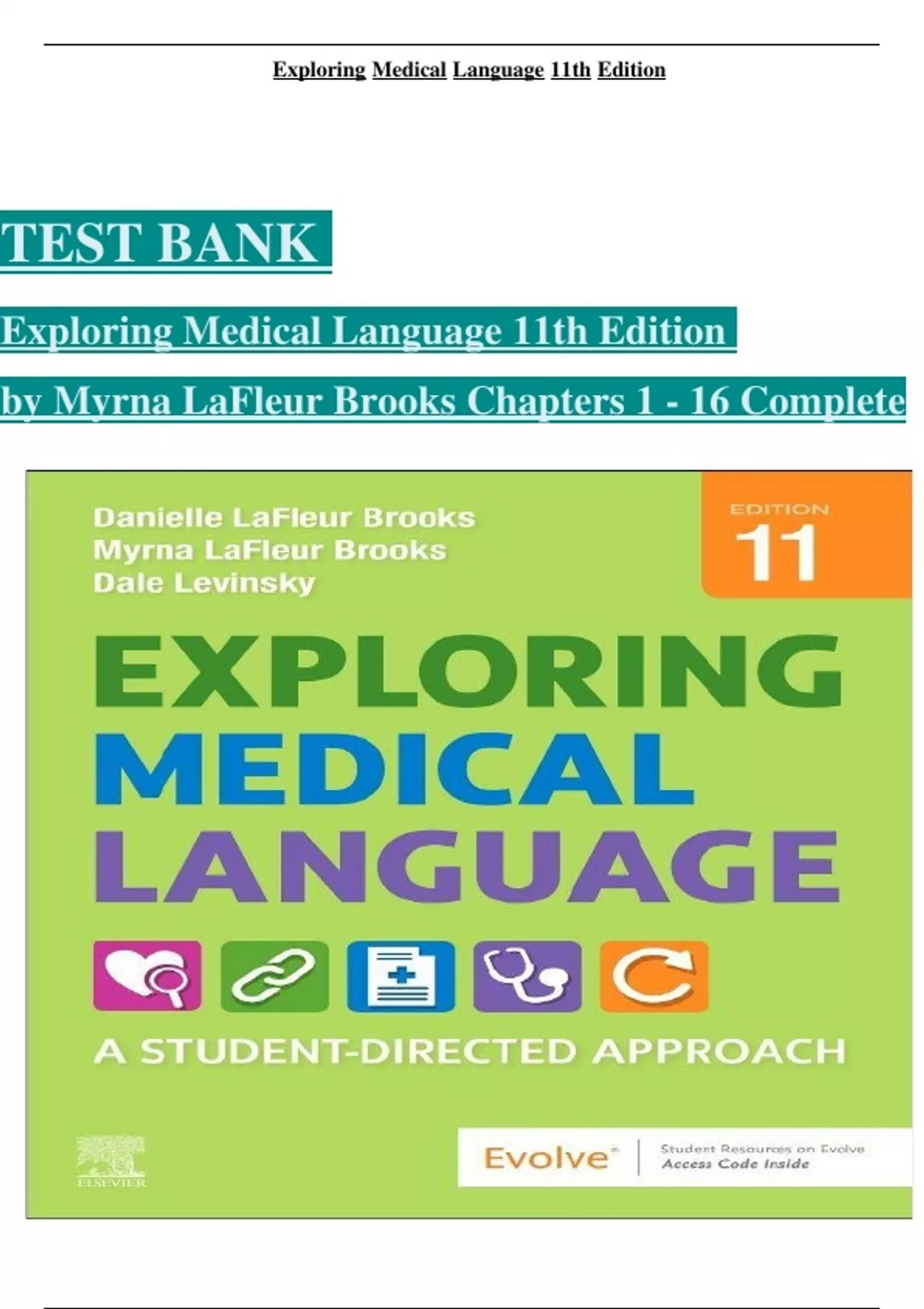 Test Bank For Exploring Medical Language: A Student-Directed Approach 11th Edition by Myrna LaFleur Brooks. All Chapters 1-16.