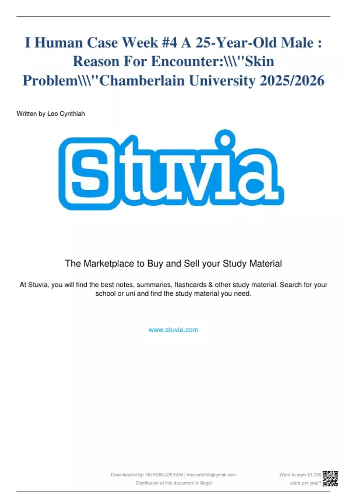 Downloaded by: NURSING2EXAM | Want to earn $1.236