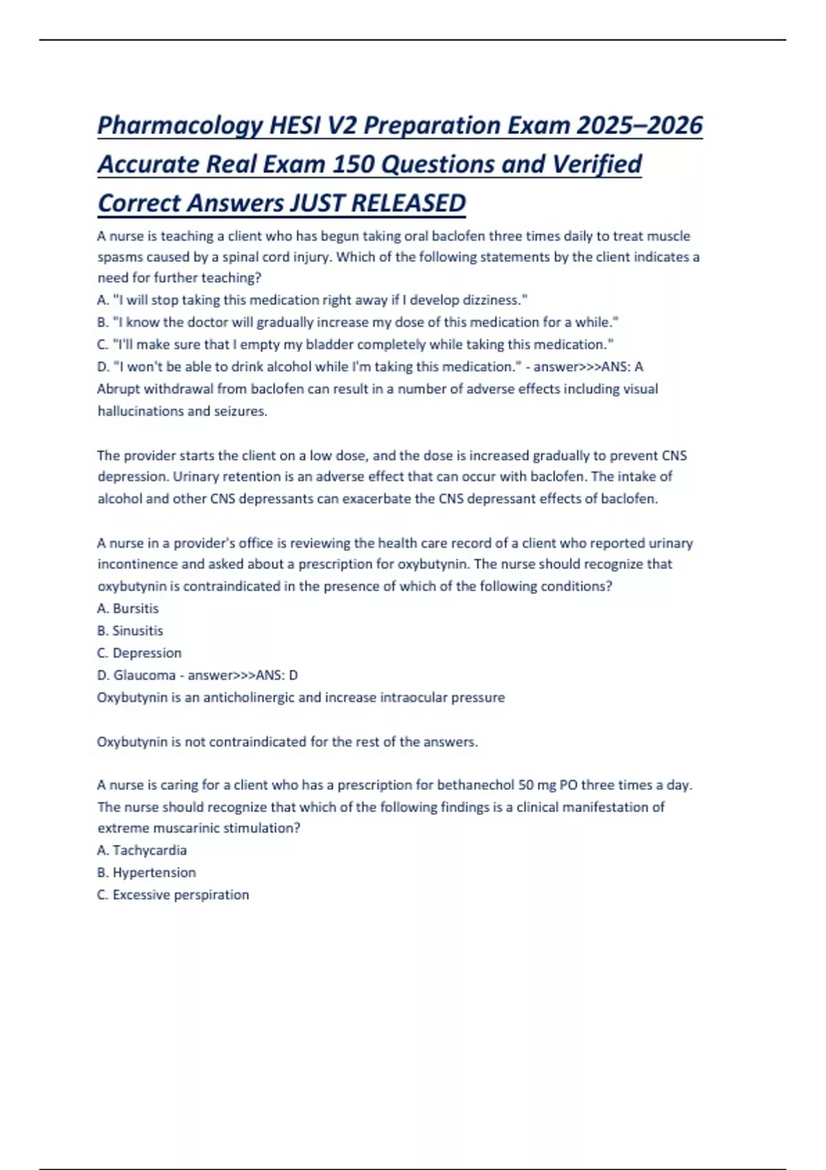 incontinence and asked about a prescription for oxybutynin. The nurse should recognize that