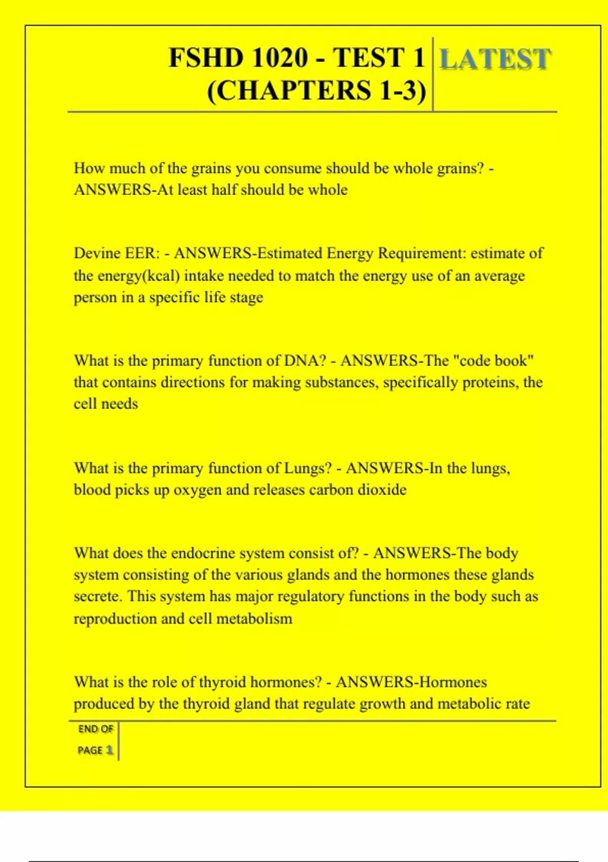 , FSHD 1020 - TEST 1 LATEST