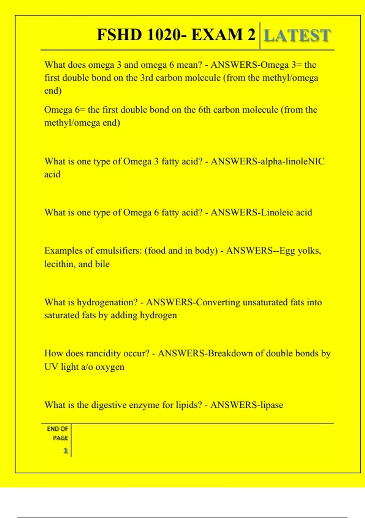 , FSHD 1020- EXAM 2 LATEST