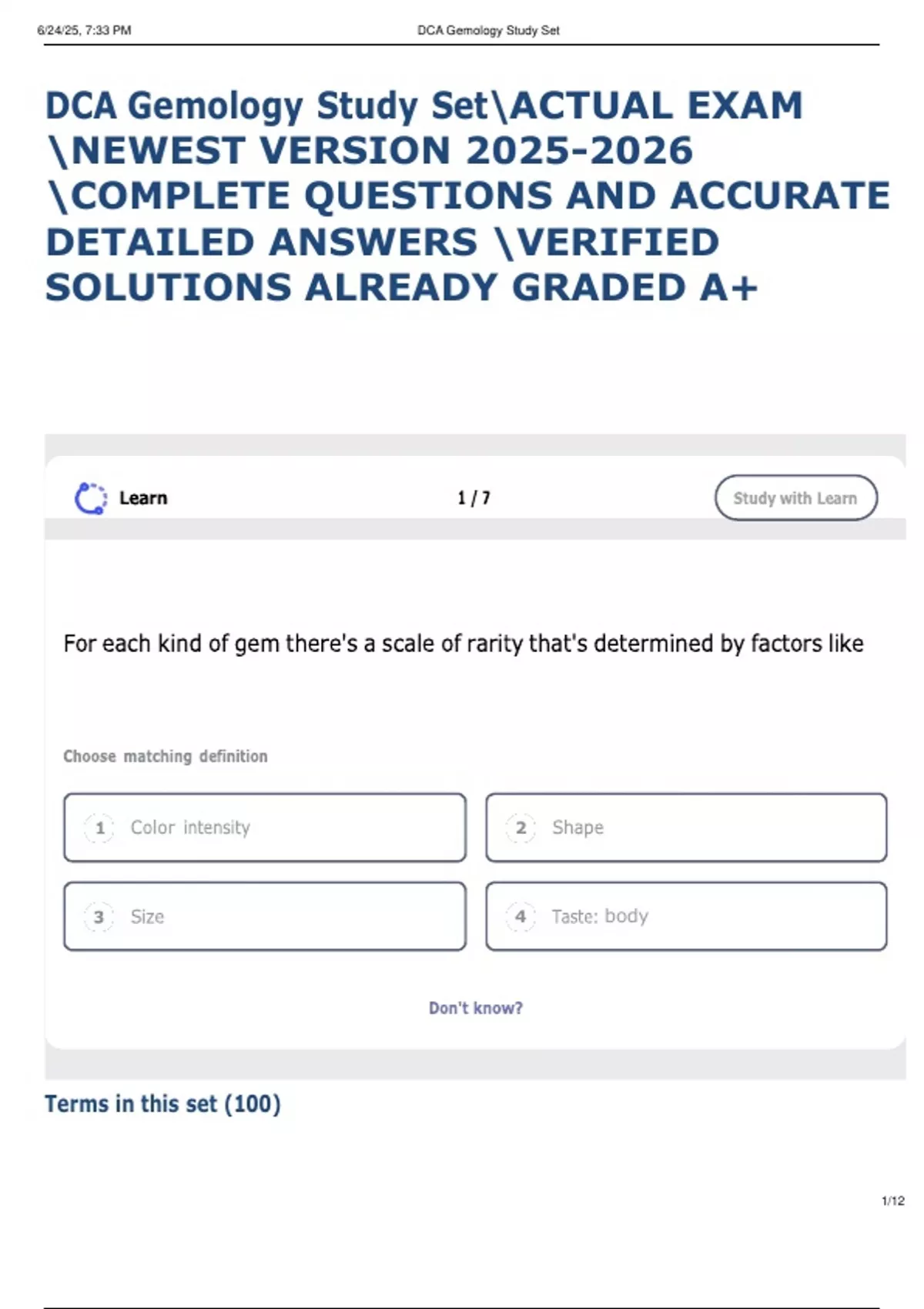 , 6/24/25, 7:33 PM DCA Gemology Study Set