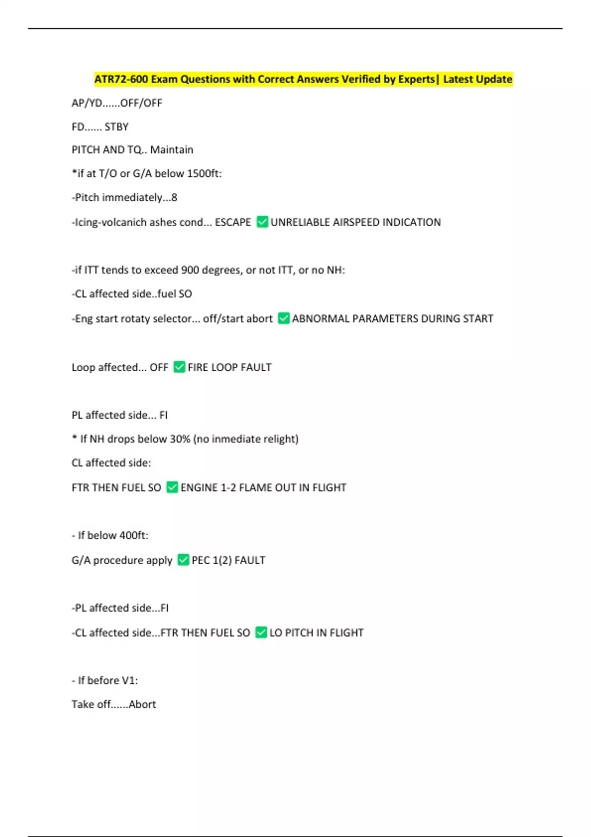 ATR72-600 Exam Questions with Correct Answers Verified by Experts| Latest Update