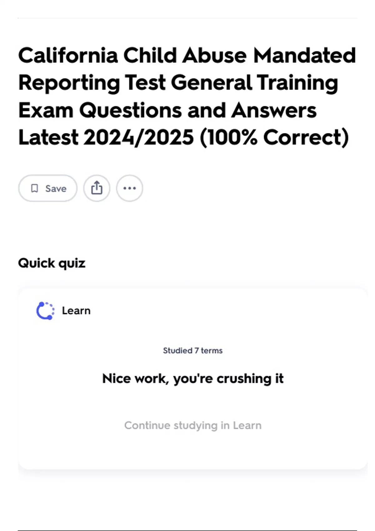 Continue studying in Learn