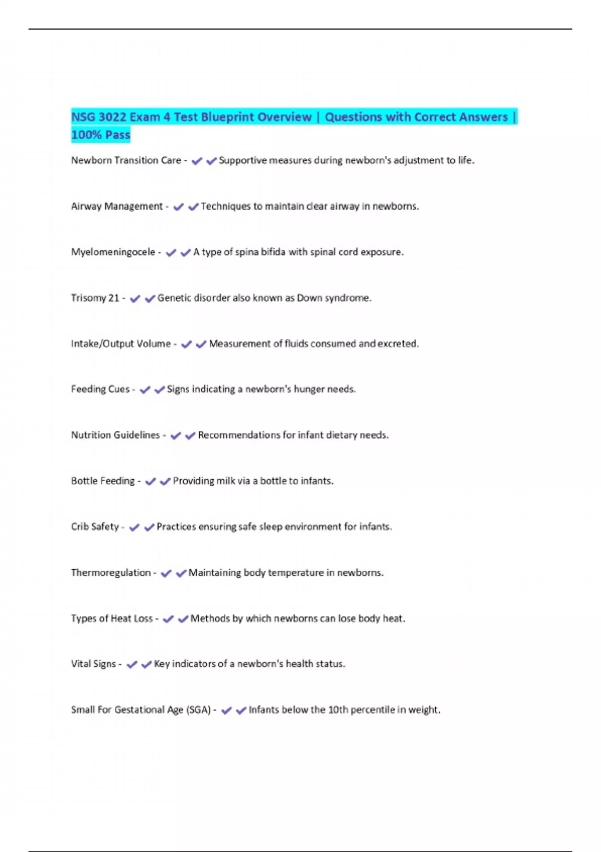NSG 3022 Exam 4 Test Blueprint Overview | Questions with Correct Answers | 100% Pass