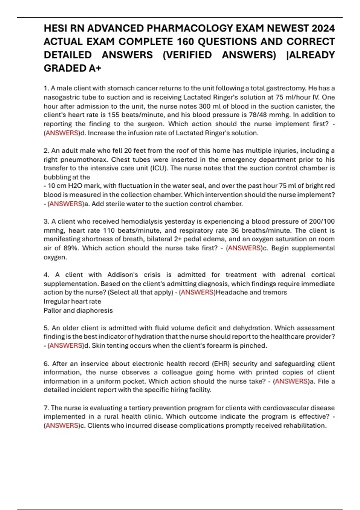 , HESI RN ADVANCED PHARMACOLOGY EXAM NEWEST 2024