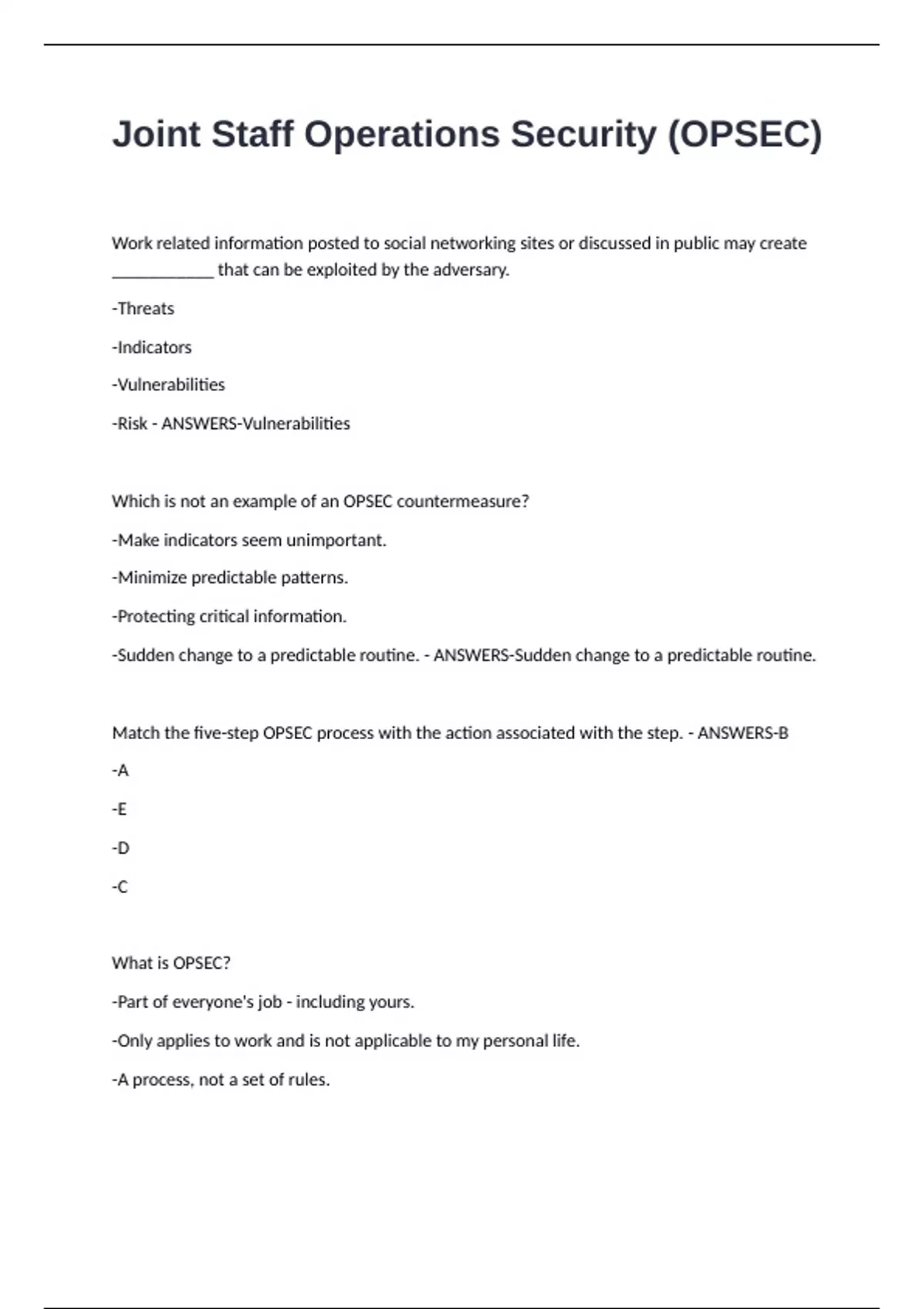 Match the five-step OPSEC process with the action associated with the step. - ANSWERS-B