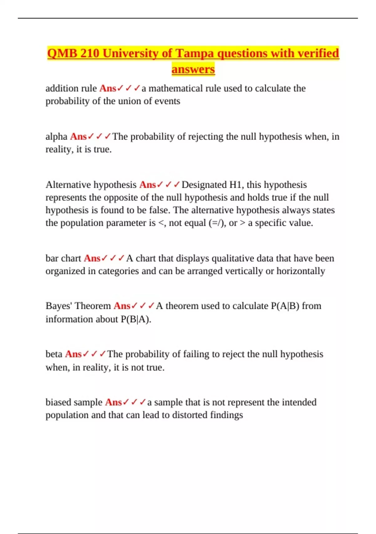 Business Statistics Ans✓✓✓Statistics applied to the business world to
