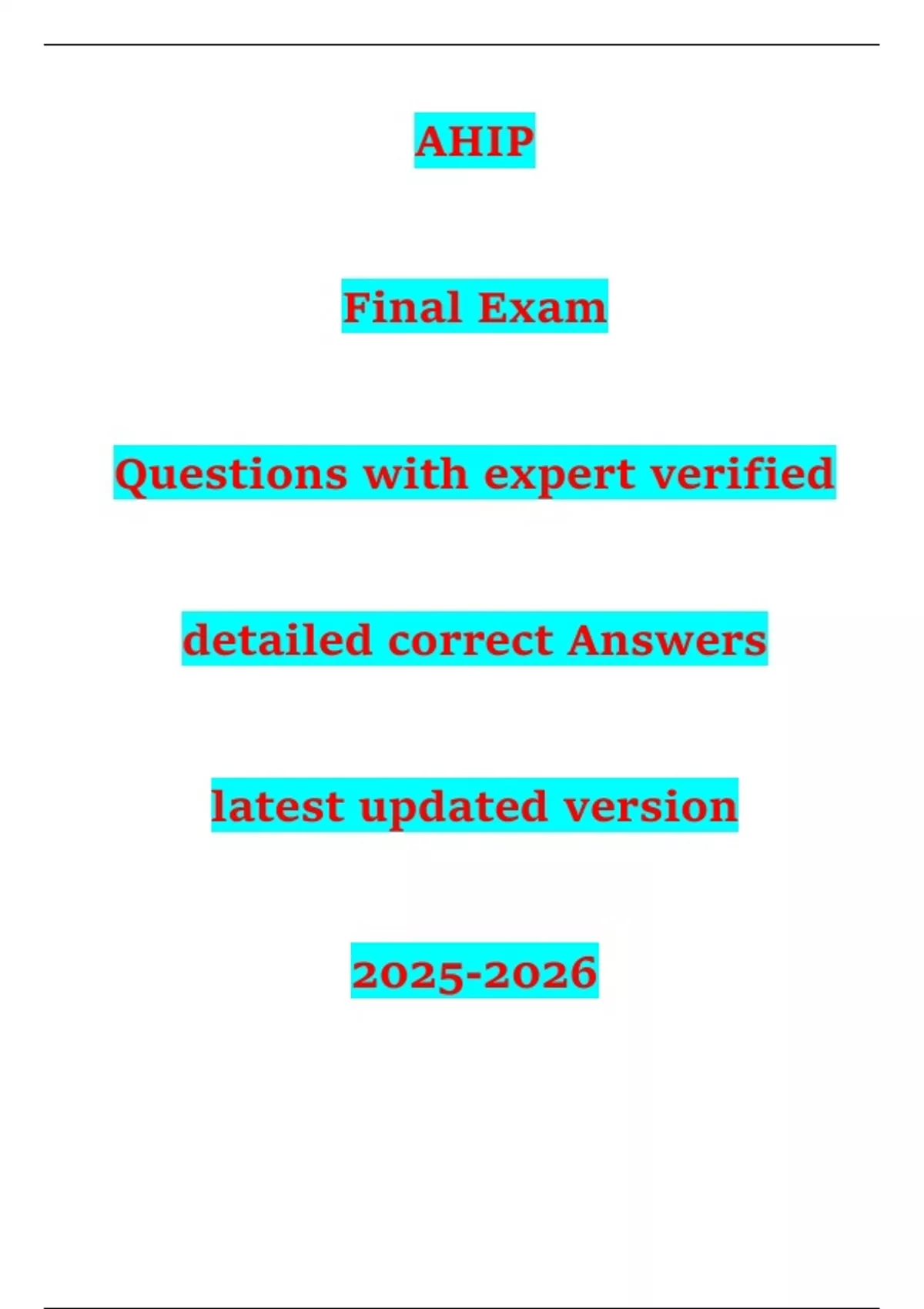 , AHIP Final Exam Questions with expert