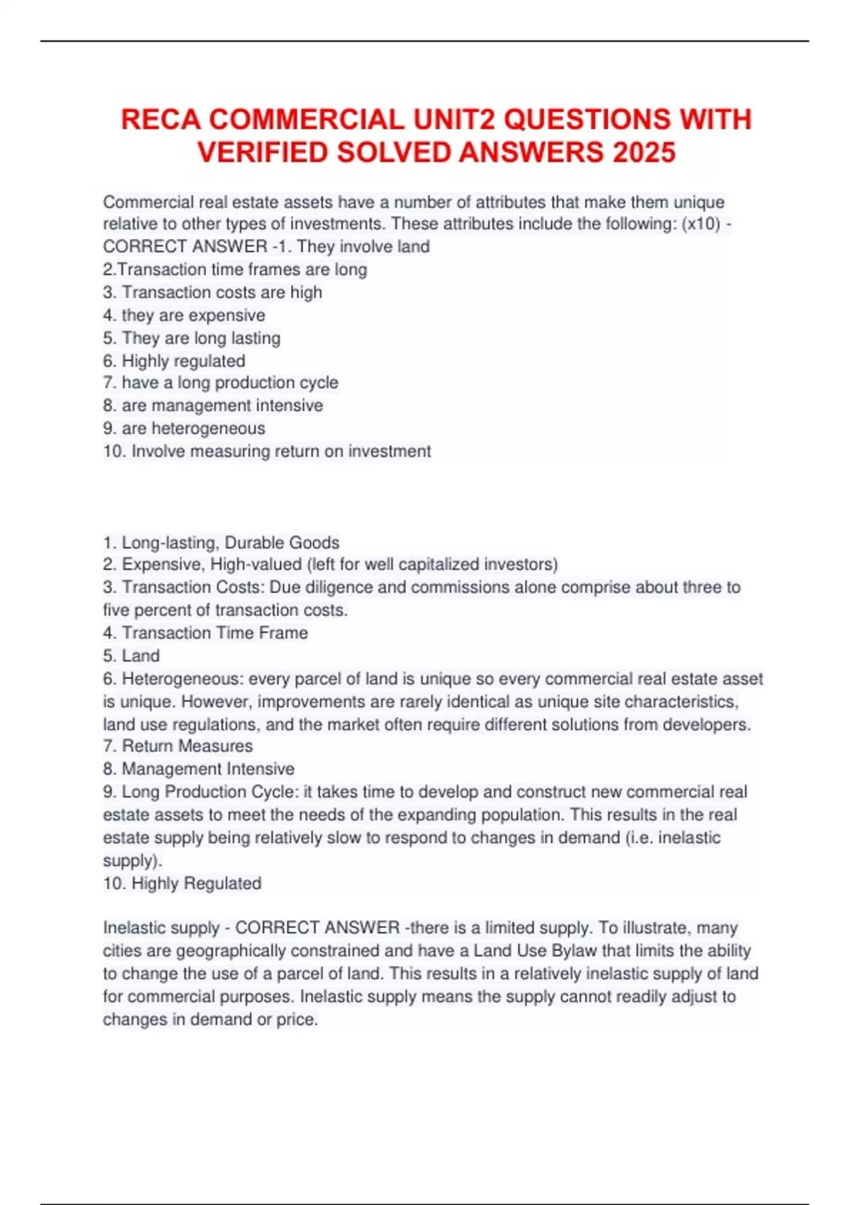 RECA Commercial Unit2 questions with verified solved answers 2025
