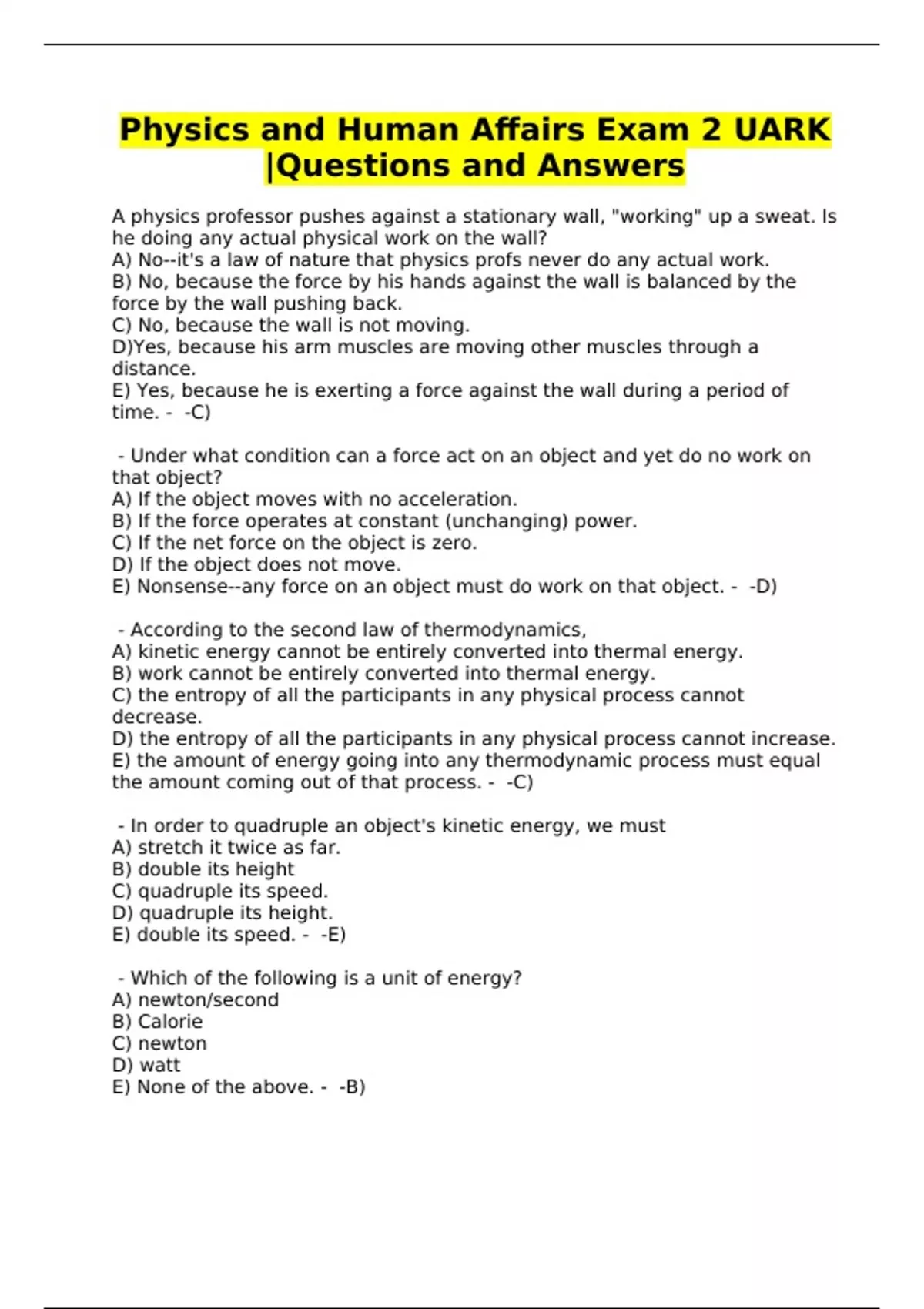 Physics and Human Affairs Exam 2 UARK |Questions and Answers