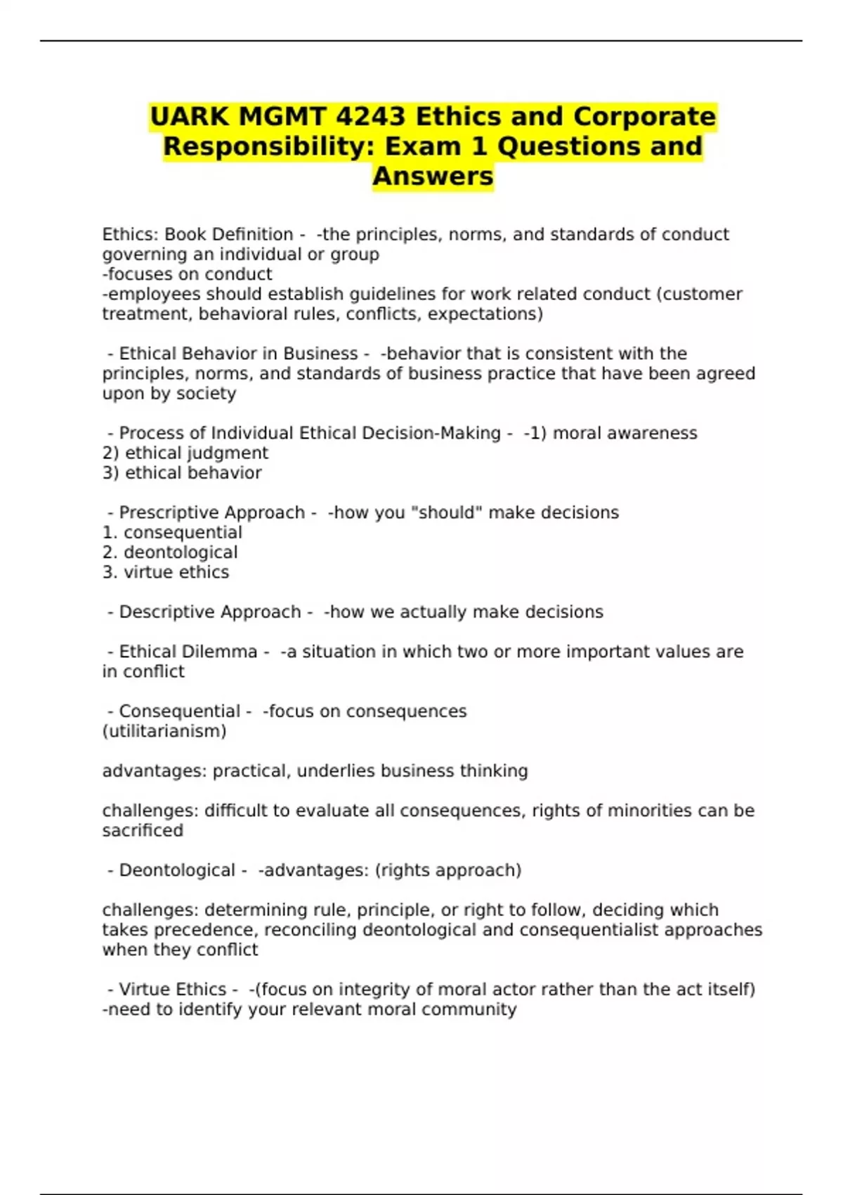 UARK MGMT 4243 Ethics and Corporate