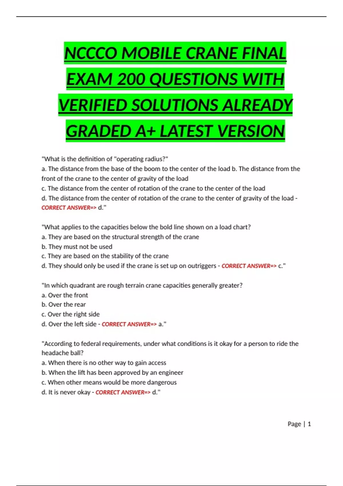 d. They should only be used if the crane is set up on outriggers - CORRECT ANSWER=> c."