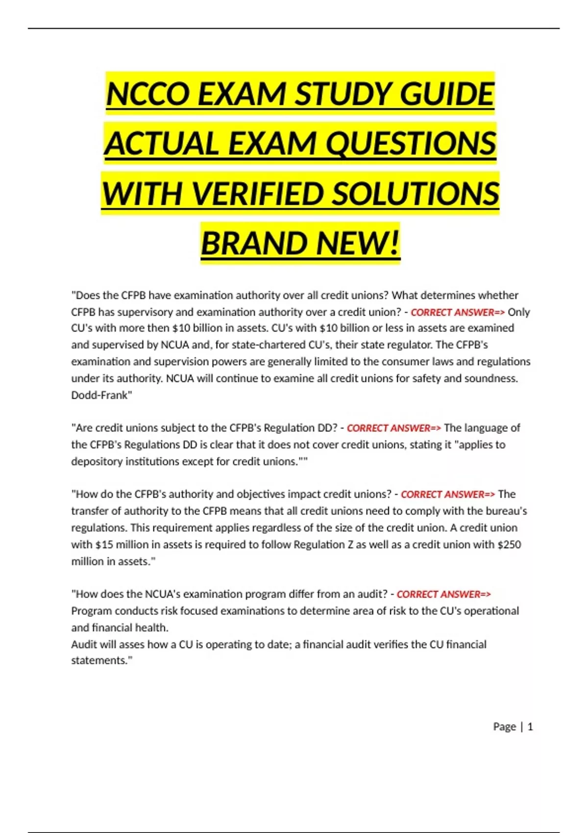 CFPB has supervisory and examination authority over a credit union? - CORRECT ANSWER=> Only