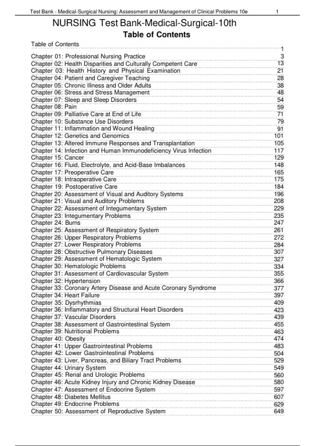 Test Bank - Medical-Surgical Nursing: Assessment and Management of Clinical Problems 10e
