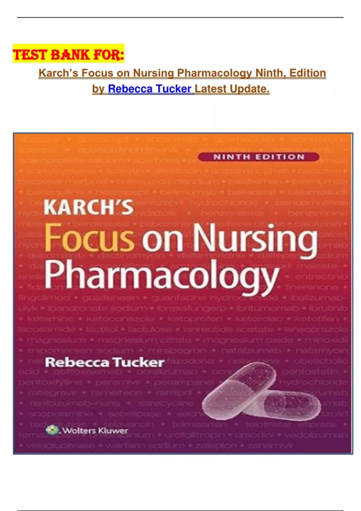 TEST BANK FOR: Karch’s Focus on Nursing Pharmacology Ninth, Edition by Rebecca Tucker Latest Update.