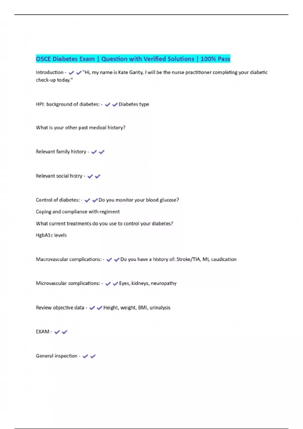 OSCE Diabetes Exam | Question with Verified Solutions | 100% Pass