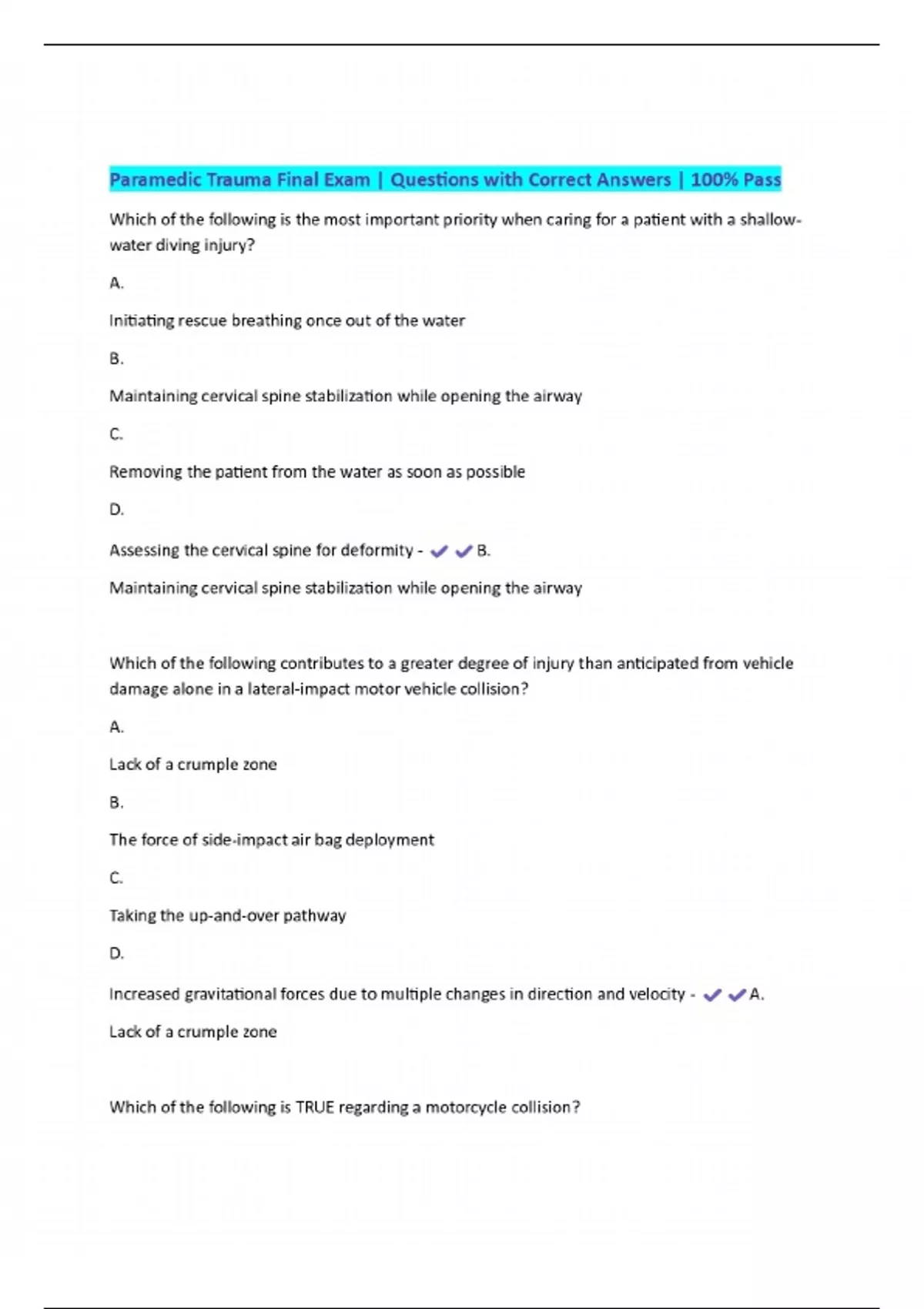 Paramedic Trauma Final Exam | Questions with Correct Answers | 100% Pass
