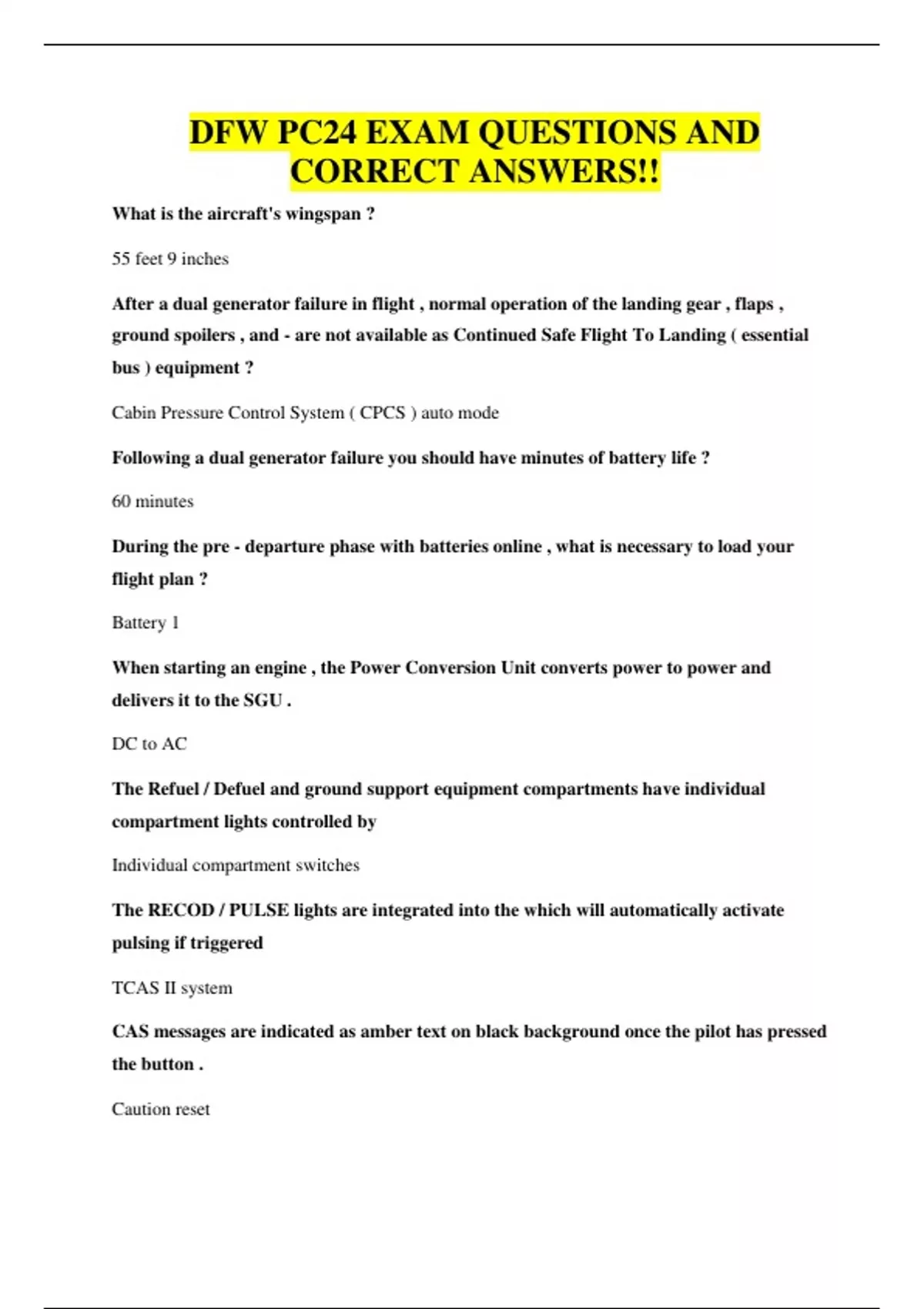DFW PC24 EXAM QUESTIONS AND