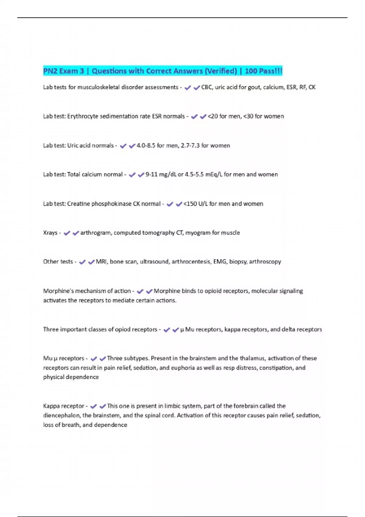 PN2 Exam 3 | Questions with Correct Answers (Verified) | 100 Pass!!!