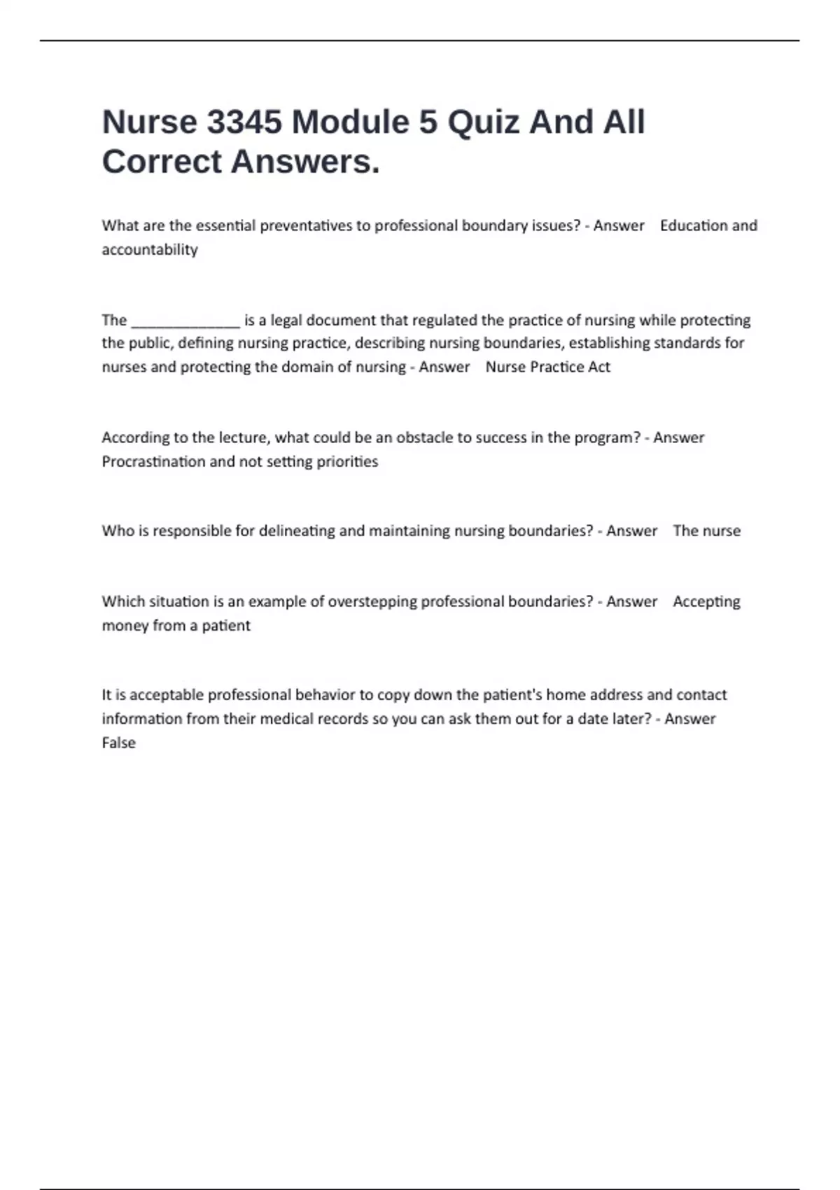 Who is responsible for delineating and maintaining nursing boundaries? - Answer The nurse