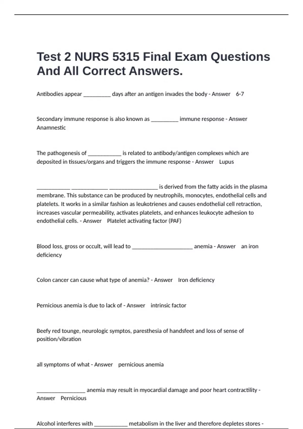 Pernicious anemia is due to lack of - Answer intrinsic factor