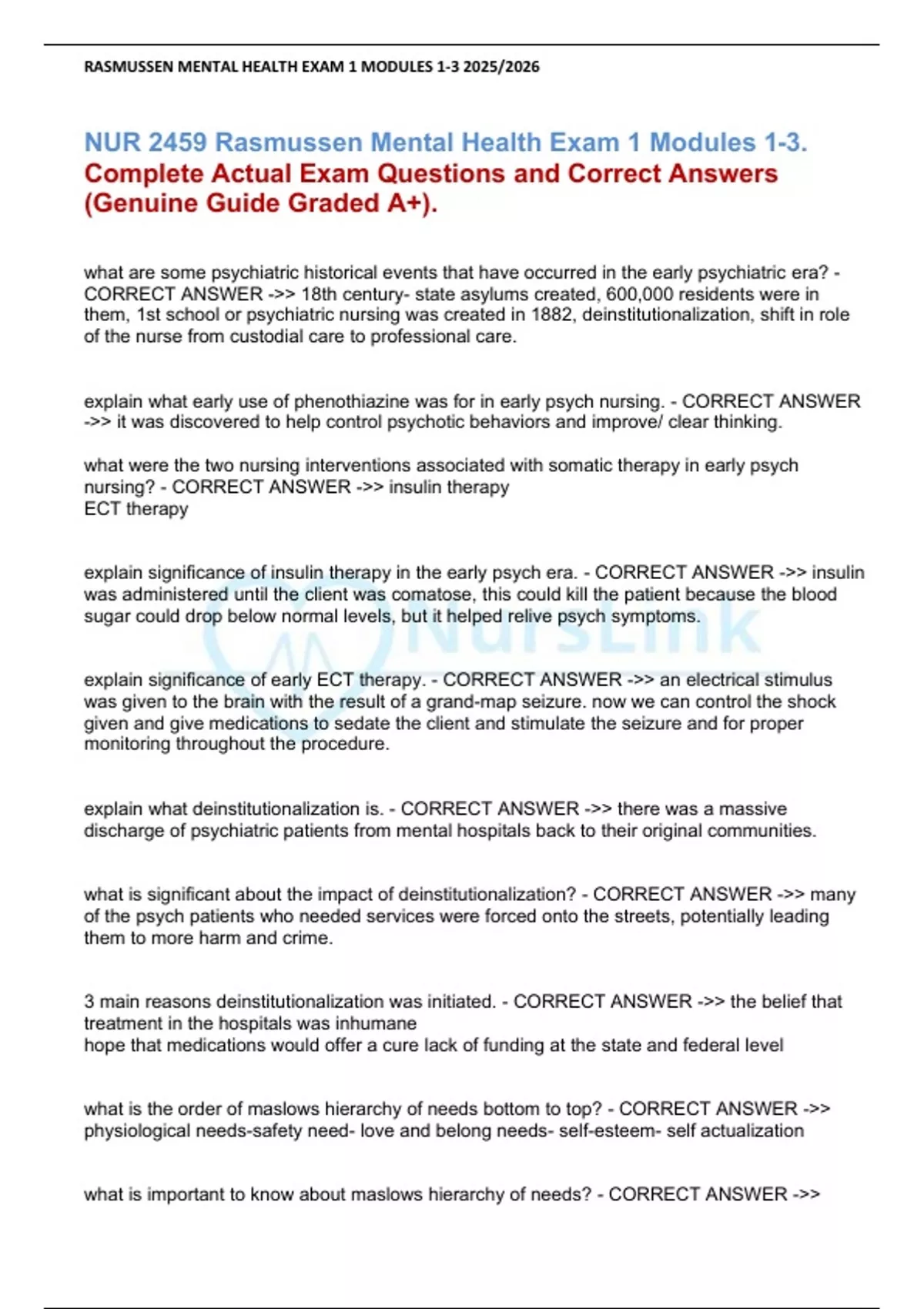 ,RASMUSSEN MENTAL HEALTH EXAM 1 MODULES 1-3 2025/2026