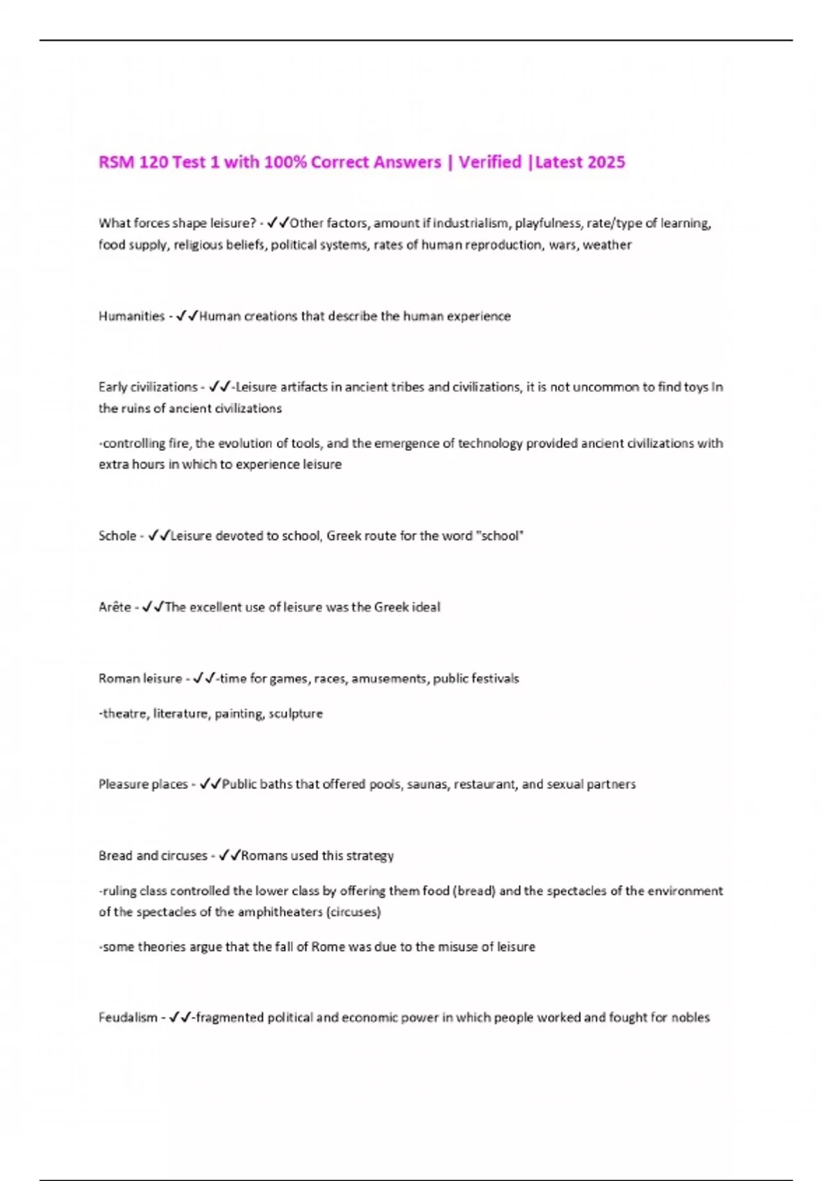 RSM 120 Test 1 with 100% Correct Answers | Verified |Latest 2025