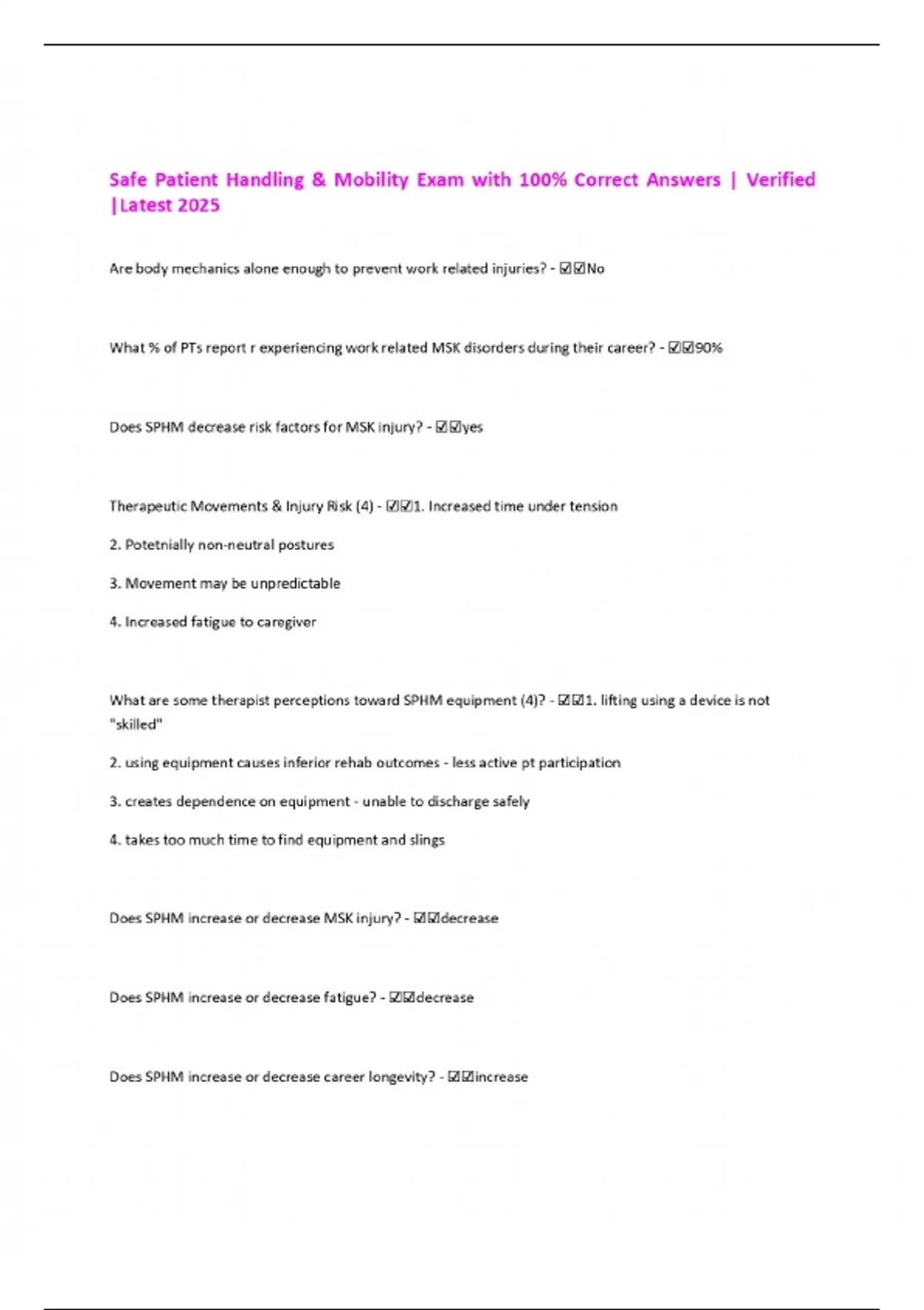 Safe Patient Handling & Mobility Exam with 100% Correct Answers | Verified |Latest 2025