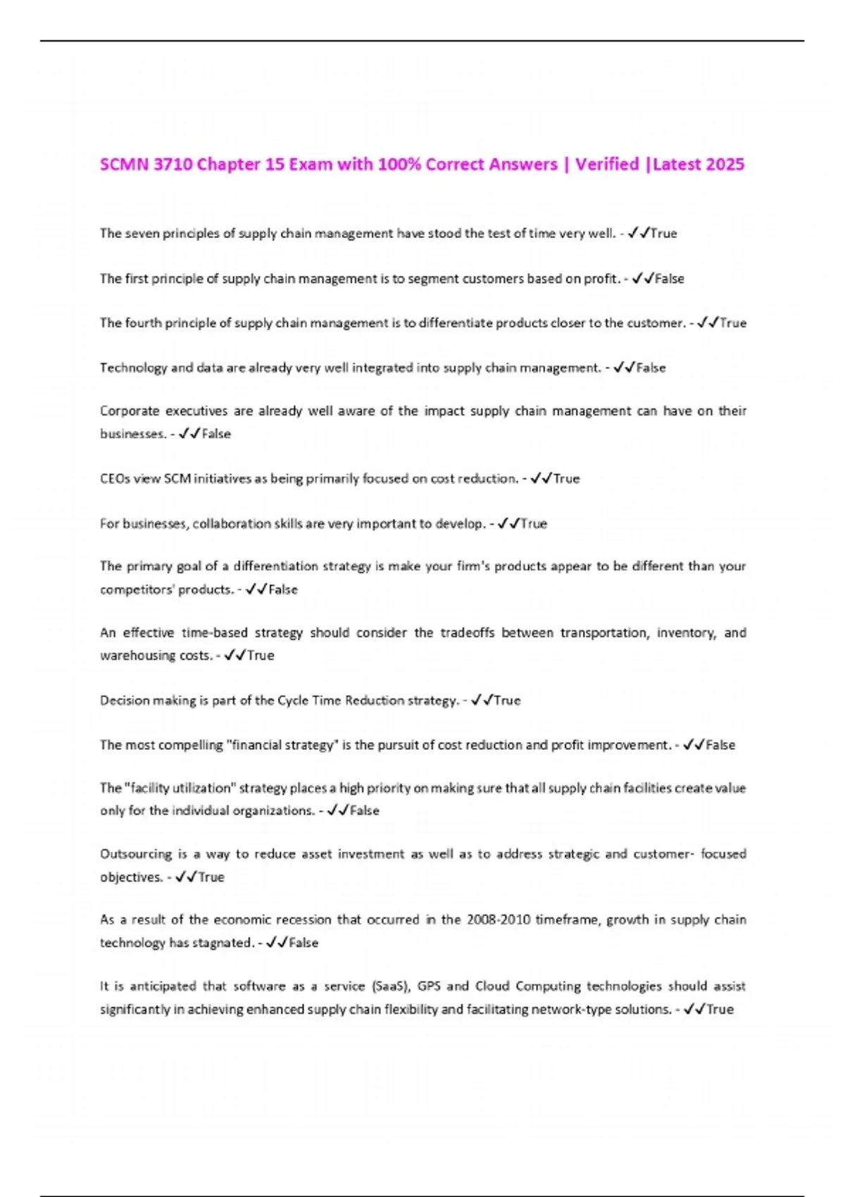 SCMN 3710 Chapter 15 Exam with 100% Correct Answers | Verified |Latest 2025