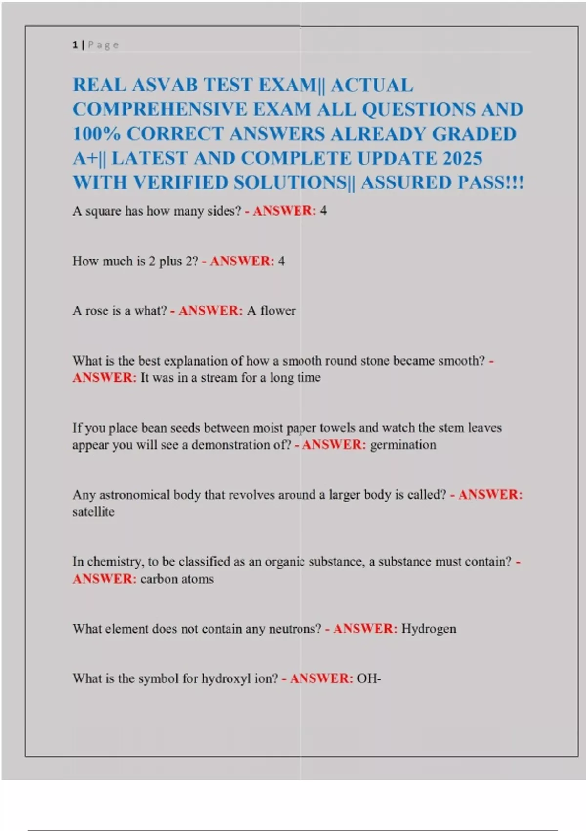 Real asvab test exam-actual comprehensive exam questions and answers.Real asvab test exam-actual comprehensive exam questions and answers.