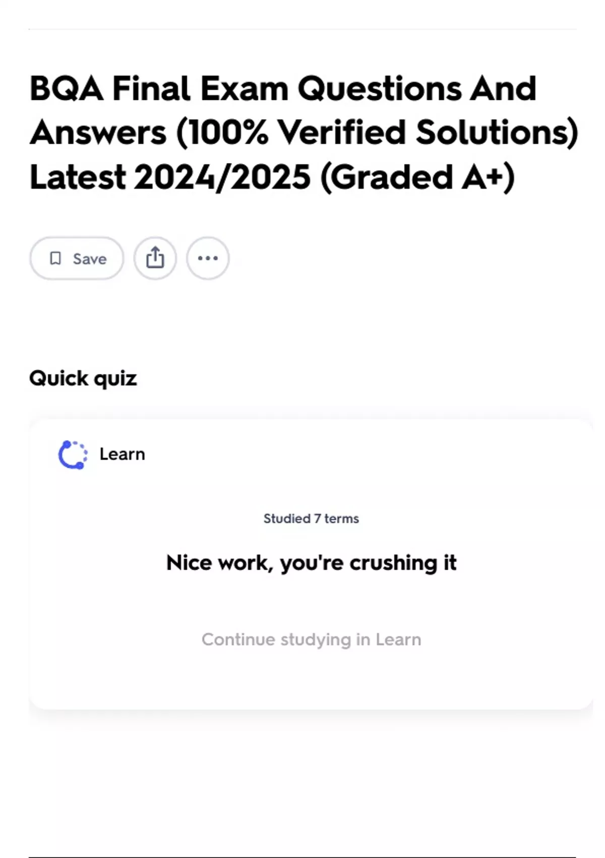 Continue studying in Learn