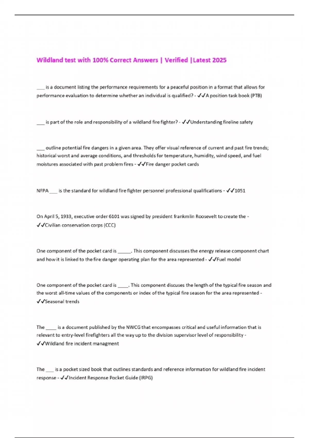 Wildland test with 100% Correct Answers | Verified |Latest 2025