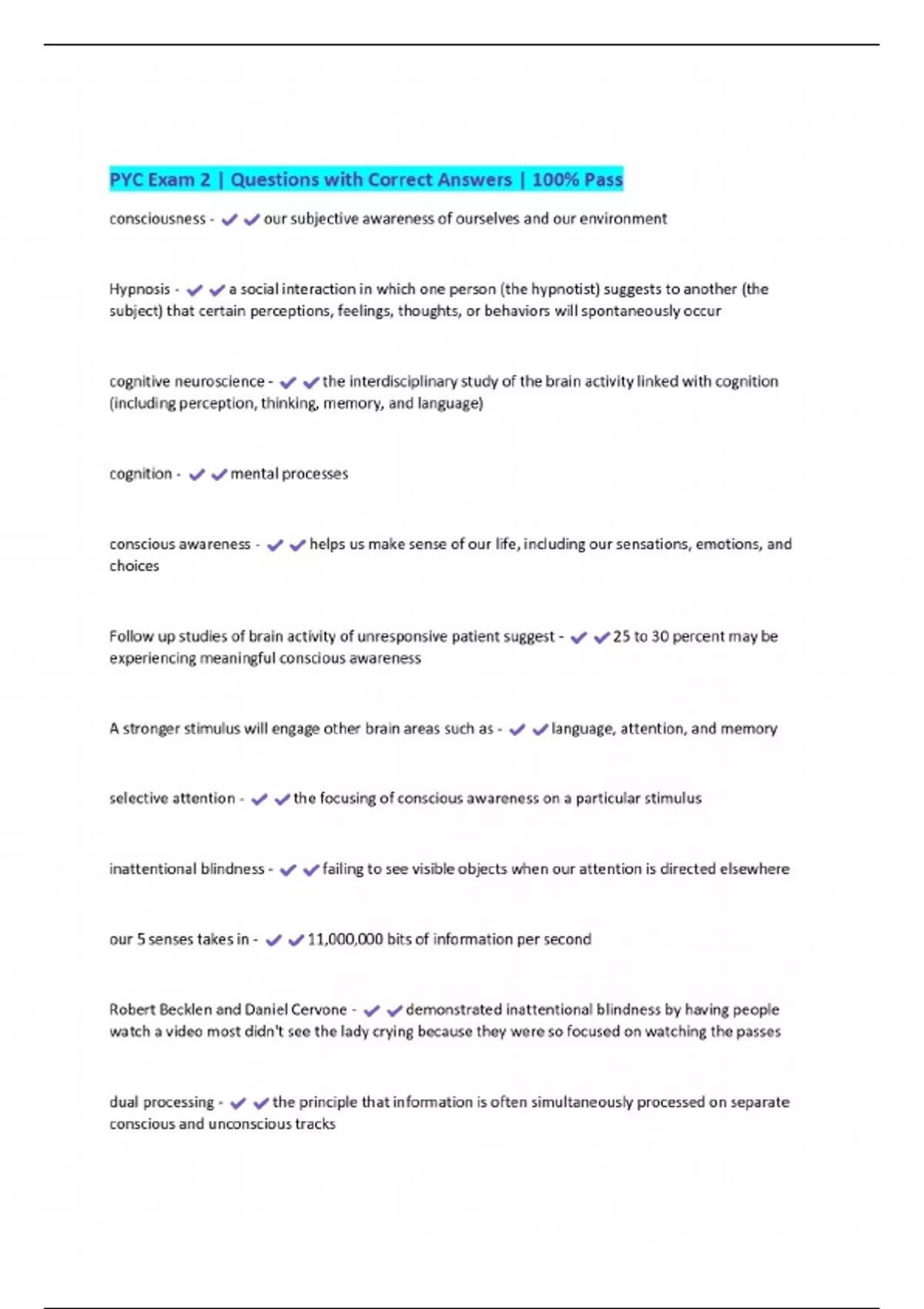 PYC Exam 2 | Questions with Correct Answers | 100% Pass