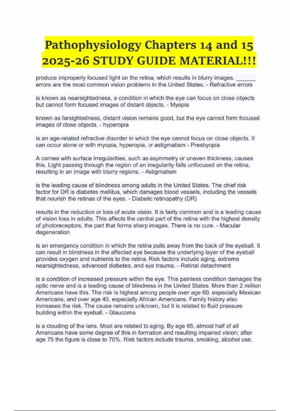 Pathophysiology Chapters 14 and STUDY GUIDE MATERIAL!!