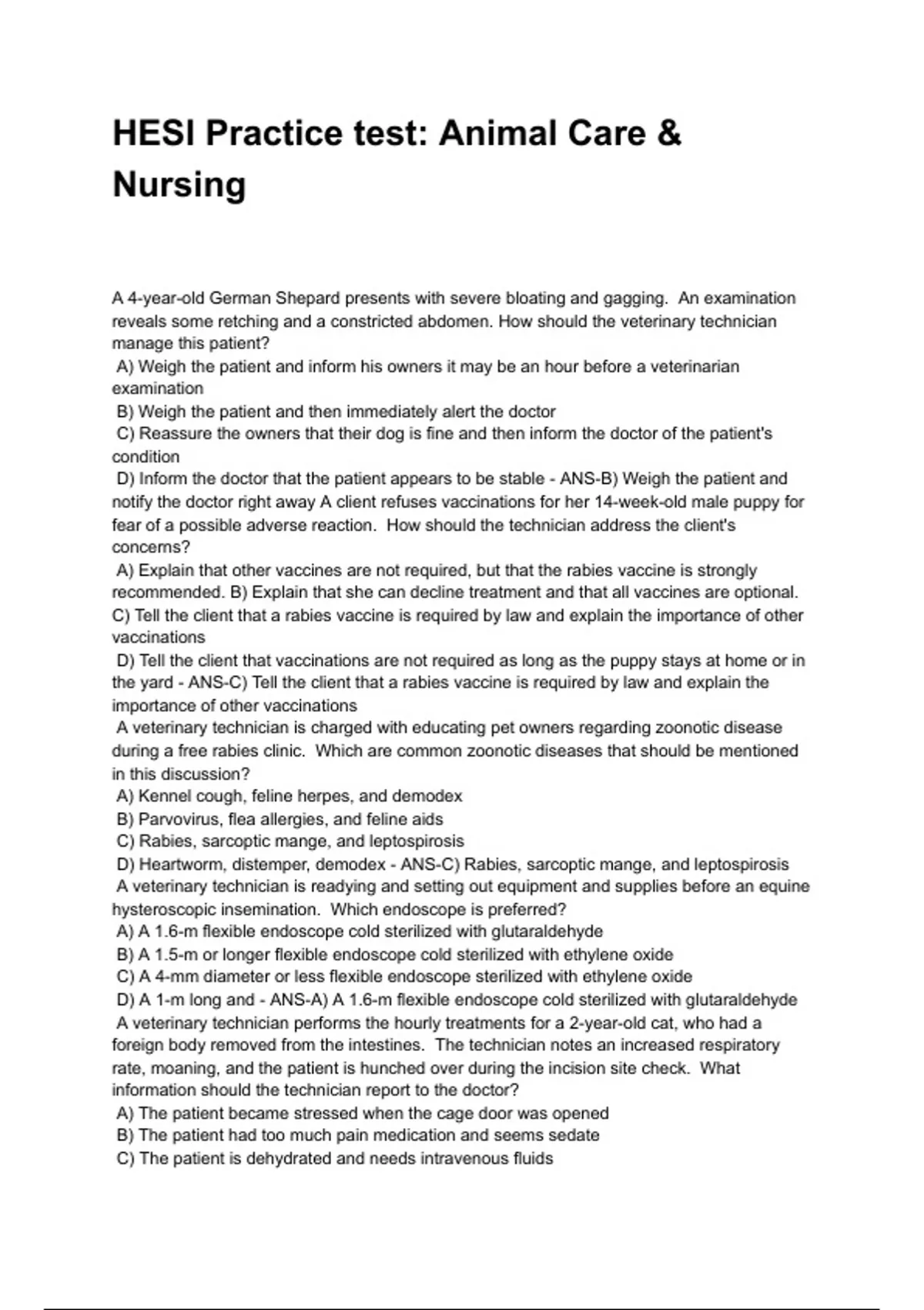 HESI Practice test: Animal Care &