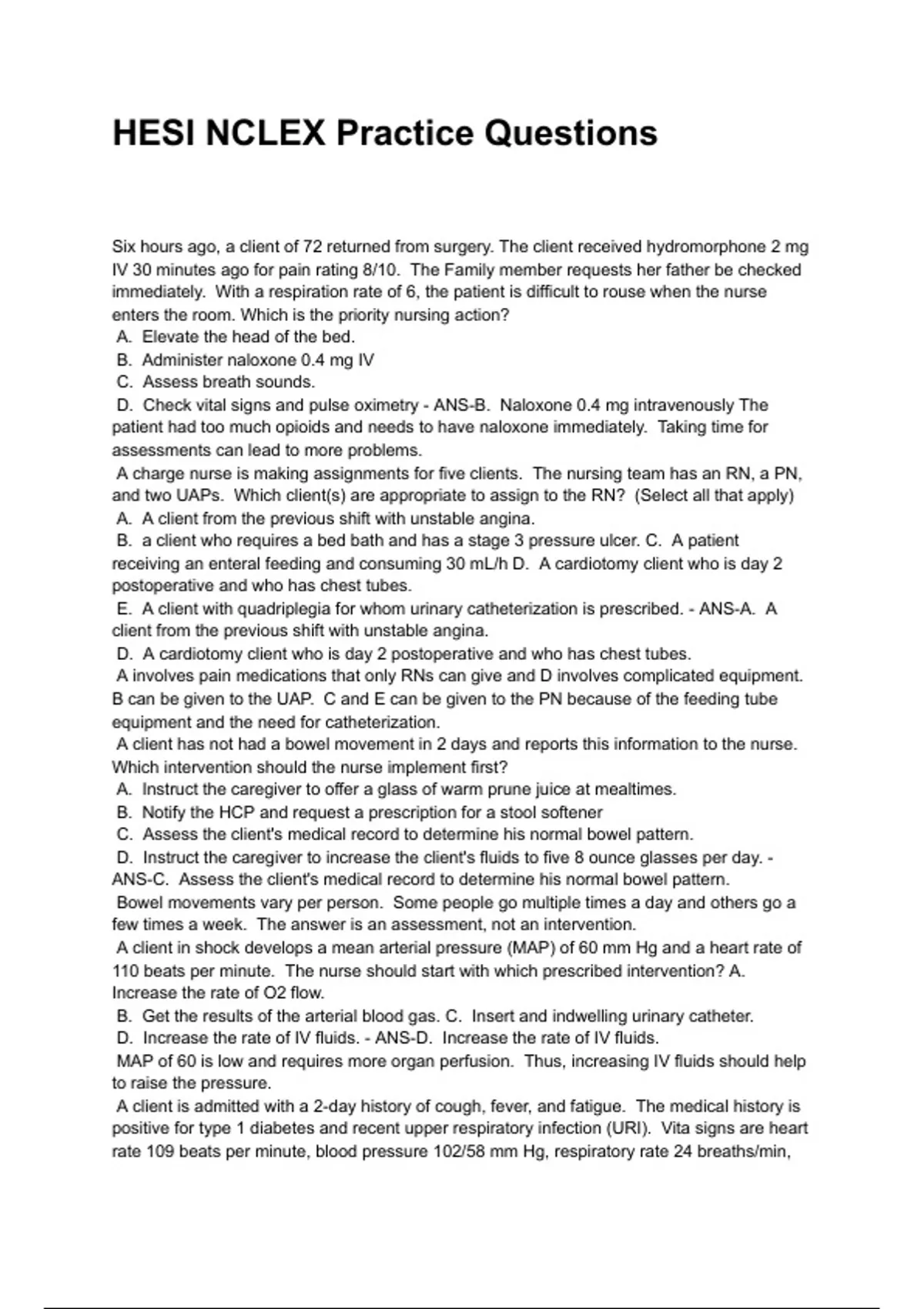 HESI NCLEX Practice Questions
