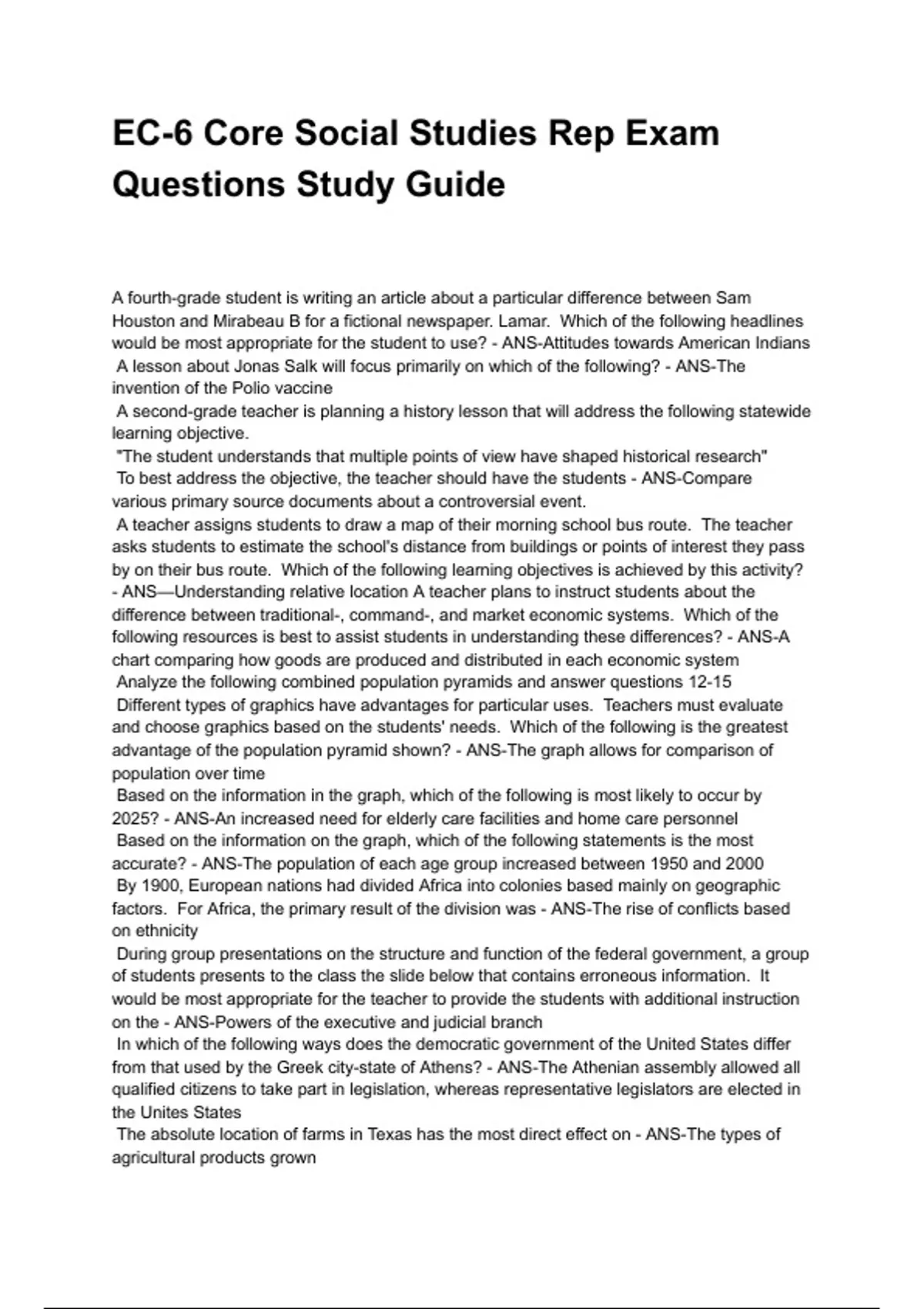 EC-6 Core Social Studies Rep Exam Questions Study Guide NEWEST 2025/2026 ACTUAL EXAM COMPLETE QUESTIONS AND CORRECT DETAILED ANSWERS (VERIFIED ANSWERS) |ALREADY GRADED A+||BRAND NEW!!