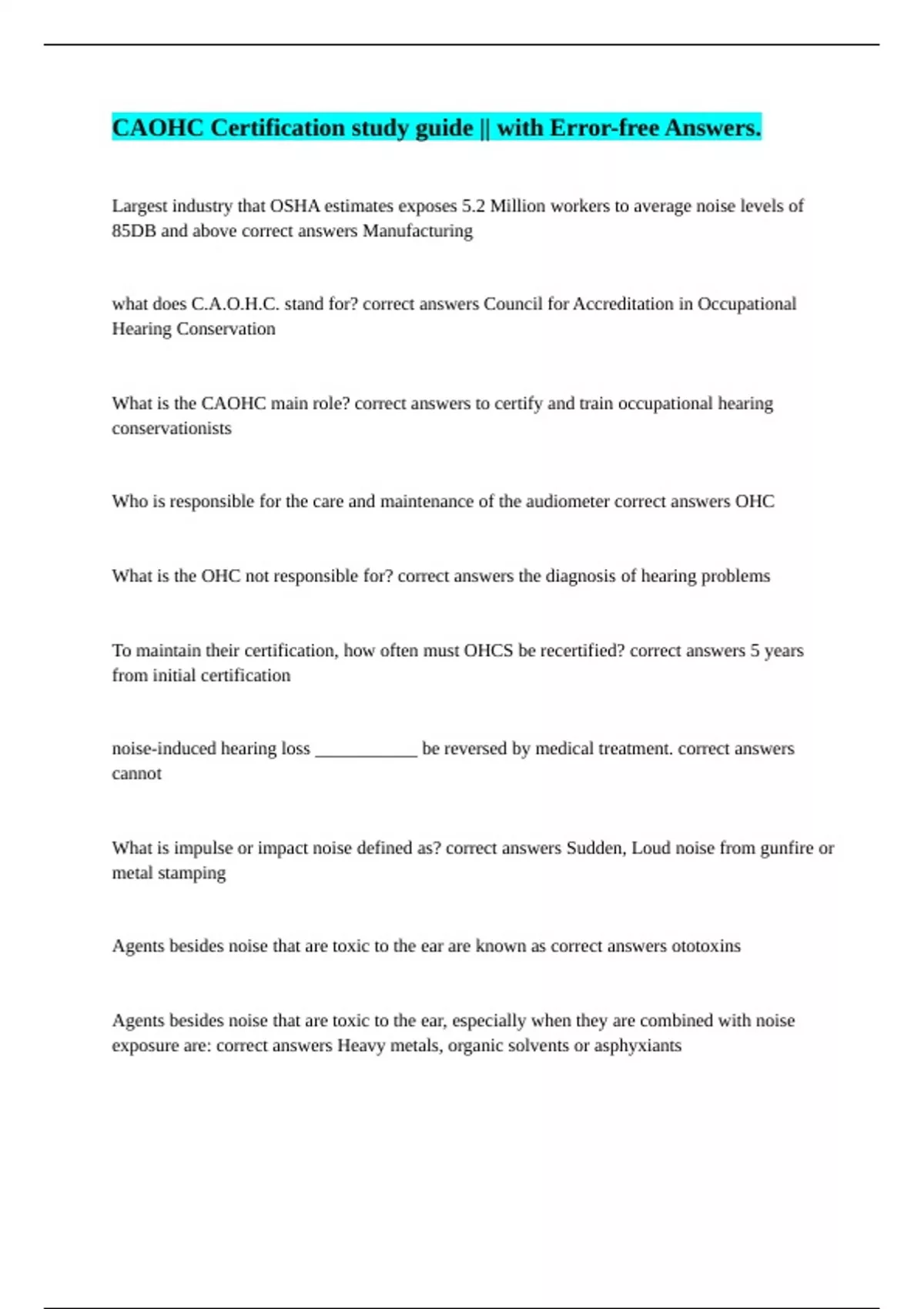 what does C.A.O.H.C. stand for? correct answers Council for Accreditation in Occupational