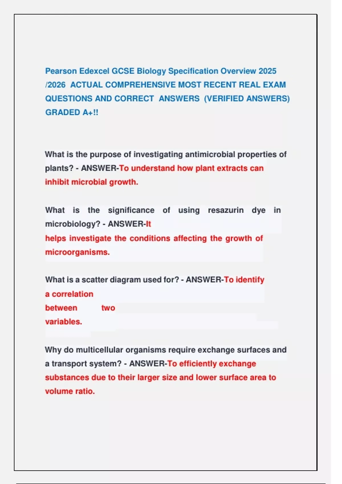 QUESTIONS AND CORRECT ANSWERS (VERIFIED ANSWERS)