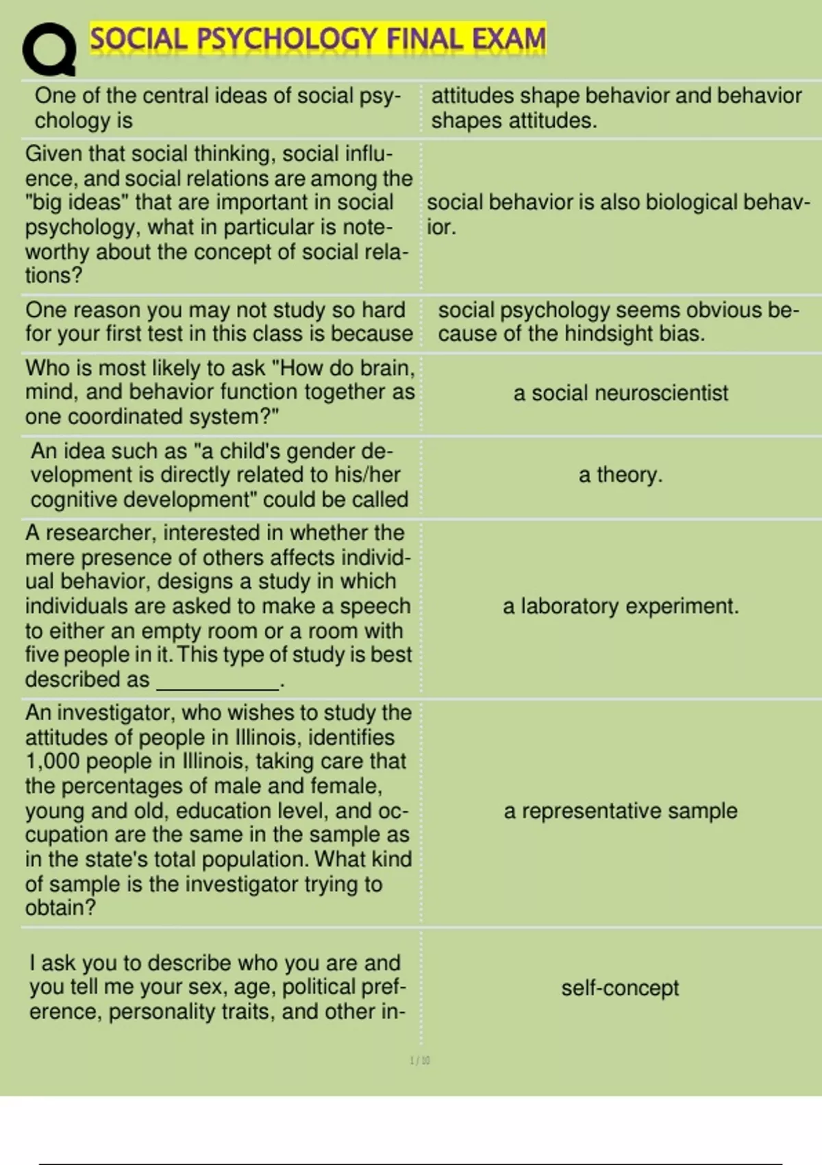 test bank Social Psychology Final Exam: Key Concepts and Practice Questions