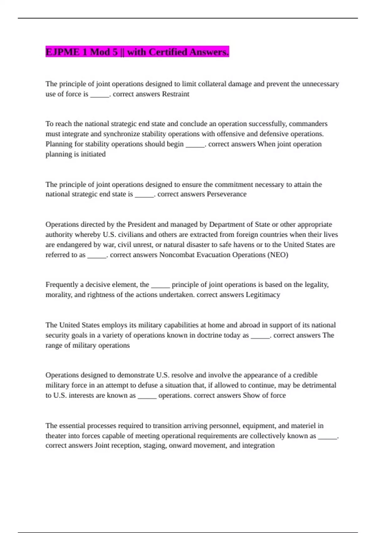 national strategic end state is _____. correct answers Perseverance