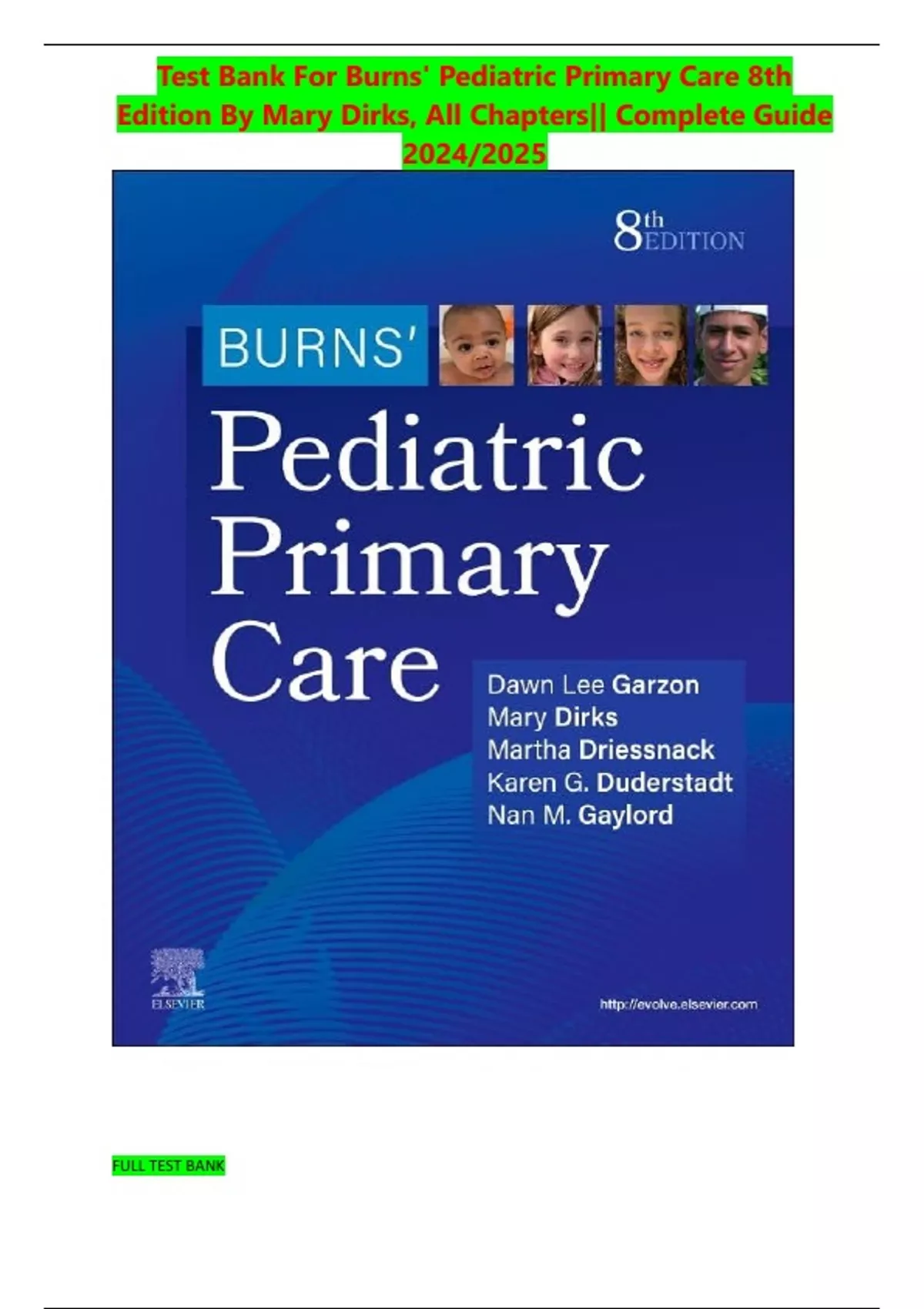 TEST BANK FOR Burns' Pediatric Primary Care 8th Edition by Garzon, Dirks, Driessnack, Duderstadt, and Gaylord.||NEWEST EDITION ALL CHAPTERS 1-46 INCLUDED||COMPLETE GUIDE GRADED A+ .
