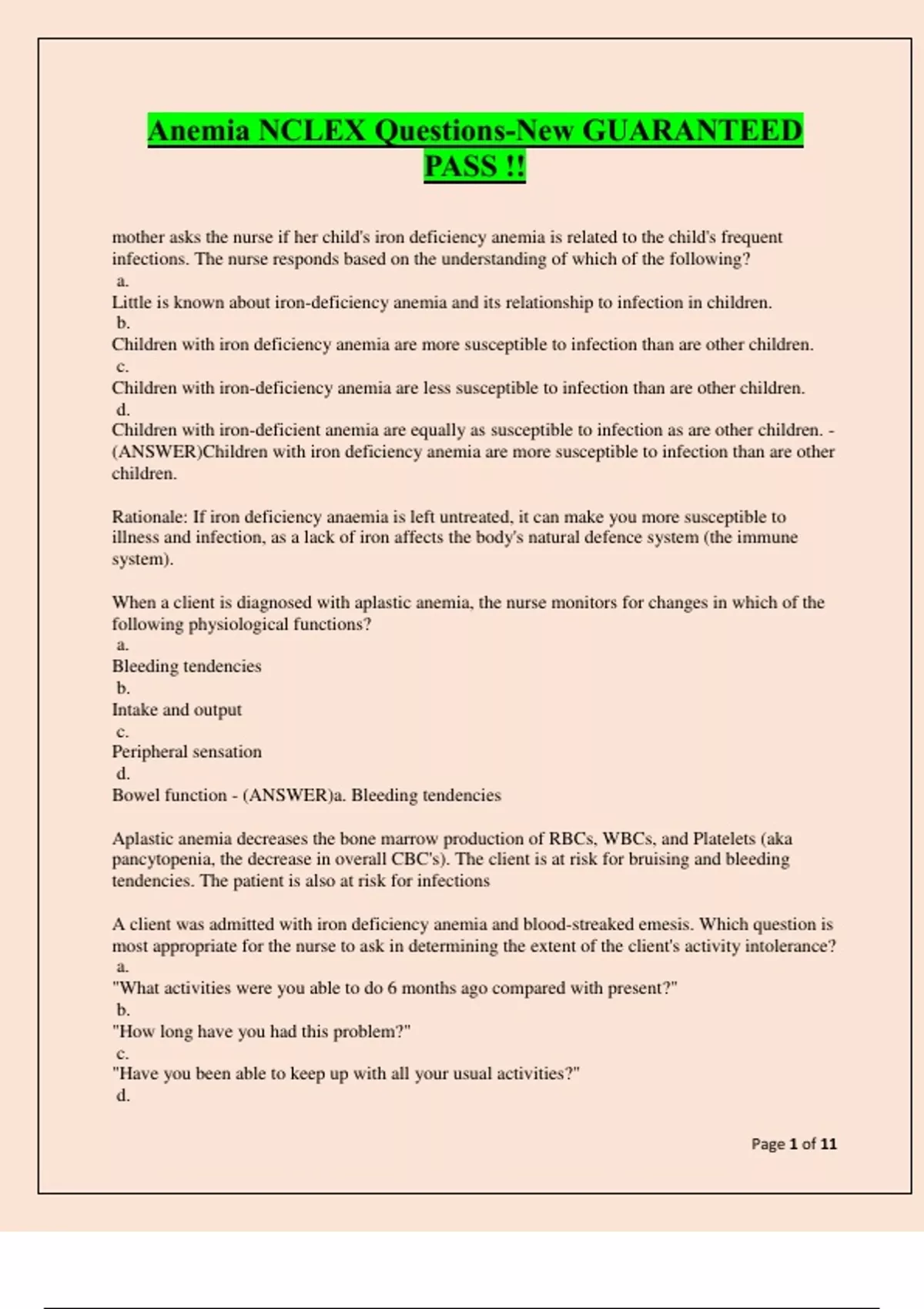 Anemia NCLEX Questions-New GUARANTEED PASS !! Anemia NCLEX Questions-New GUARANTEED PASS !!