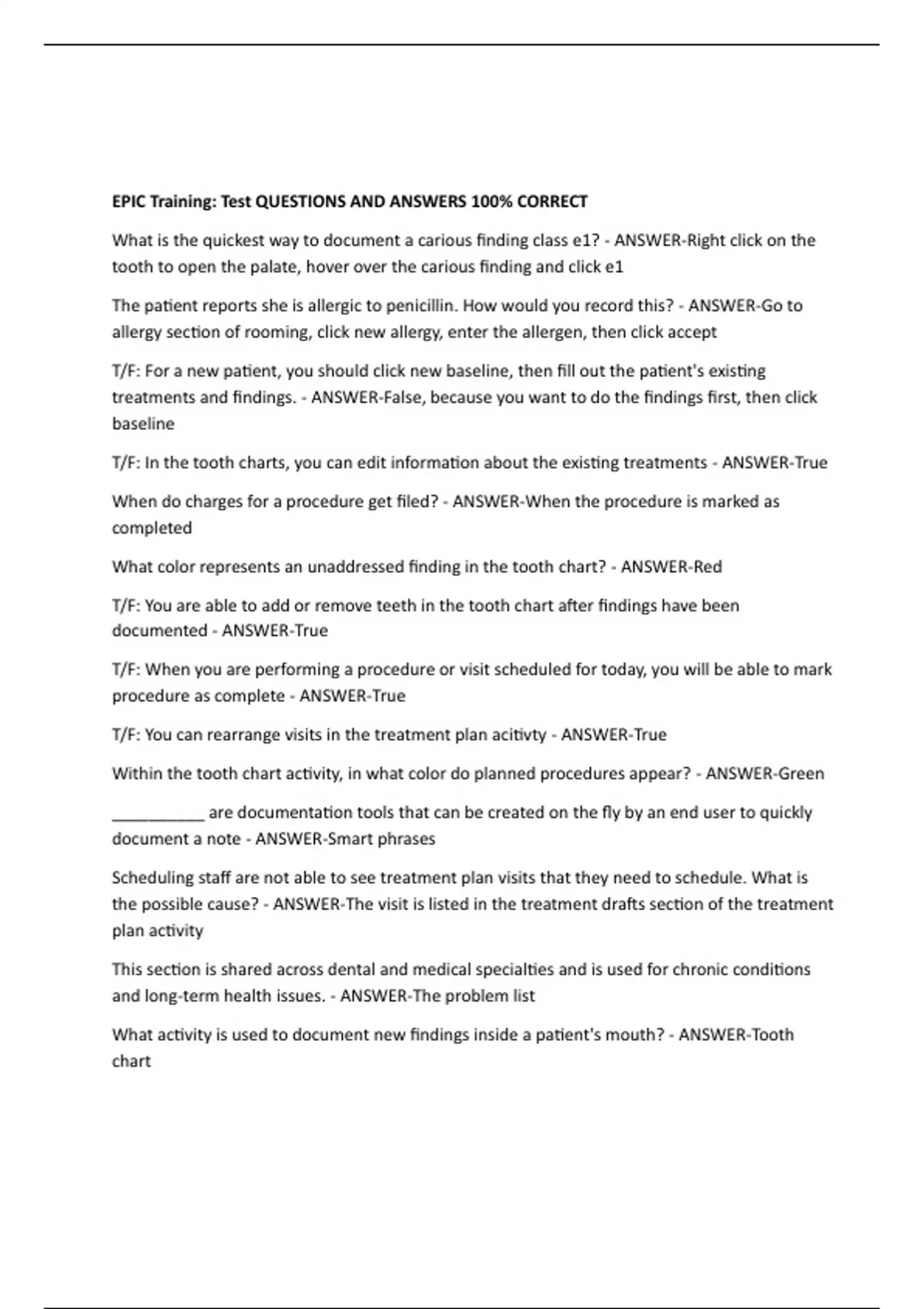 EPIC Training: Test QUESTIONS AND ANSWERS 100% CORRECT